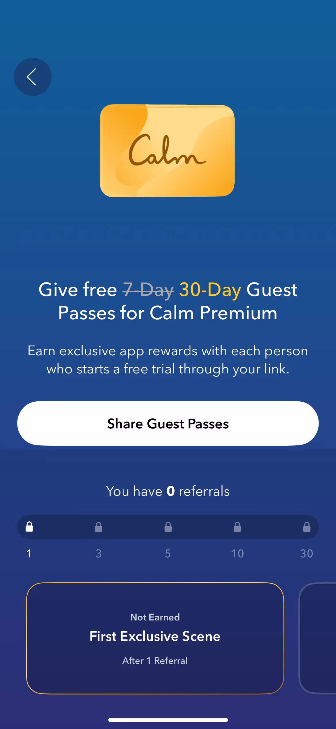 Calm's approach starts with a simple breathing exercise that users experience before any setup. This immediate value delivery sets expectations and demonstrates the app's core benefit within seconds of opening.
