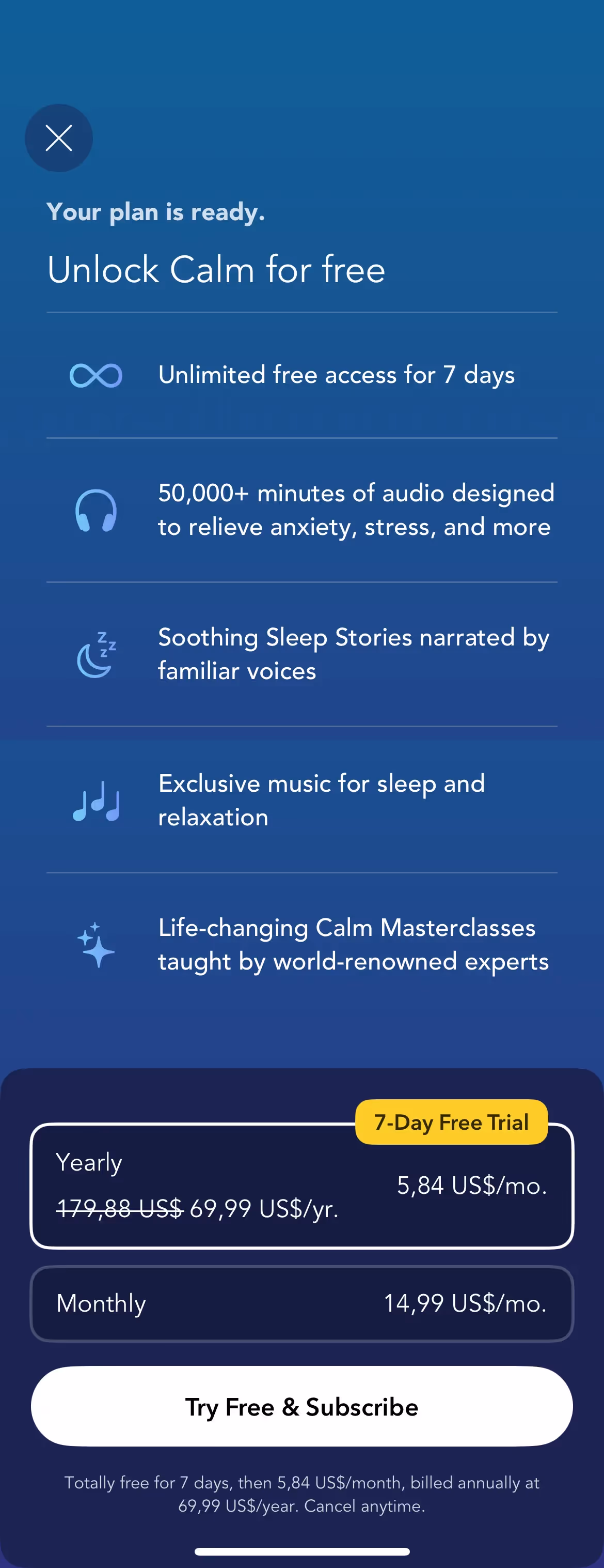 What makes a meditation app instantly calming from the first interaction? Calm's onboarding demonstrates how atmospheric design and progressive goal-setting create immediate stress relief while building long-term engagement habits.
