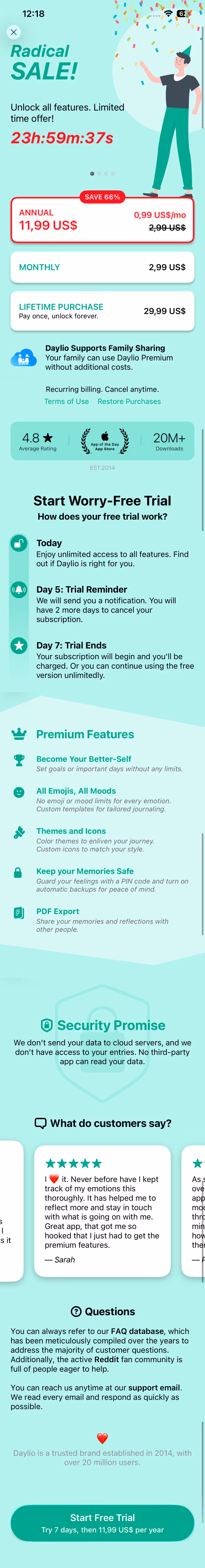 Browse the screenshots to see how Daylio balances habit-formation setup with simplicity. Also explore their email and mobile push notification flows, as well as their web or app communication channels. This example is useful if you design habit-tracking or journaling features and want to support retention from day one.