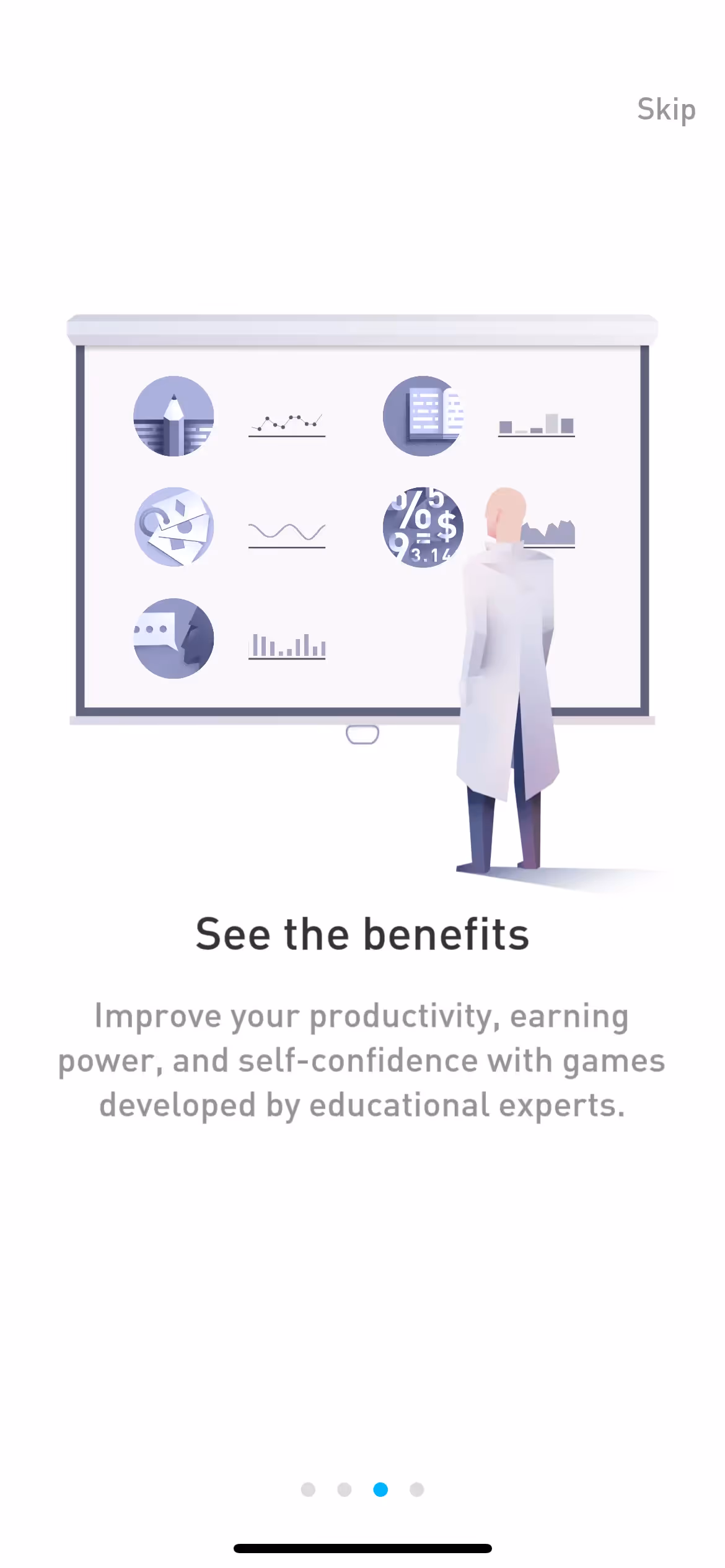 Their real-world application focus receives clear introduction during onboarding. Users understand how brain training games connect to practical skills like email comprehension, mental math, and verbal expression.