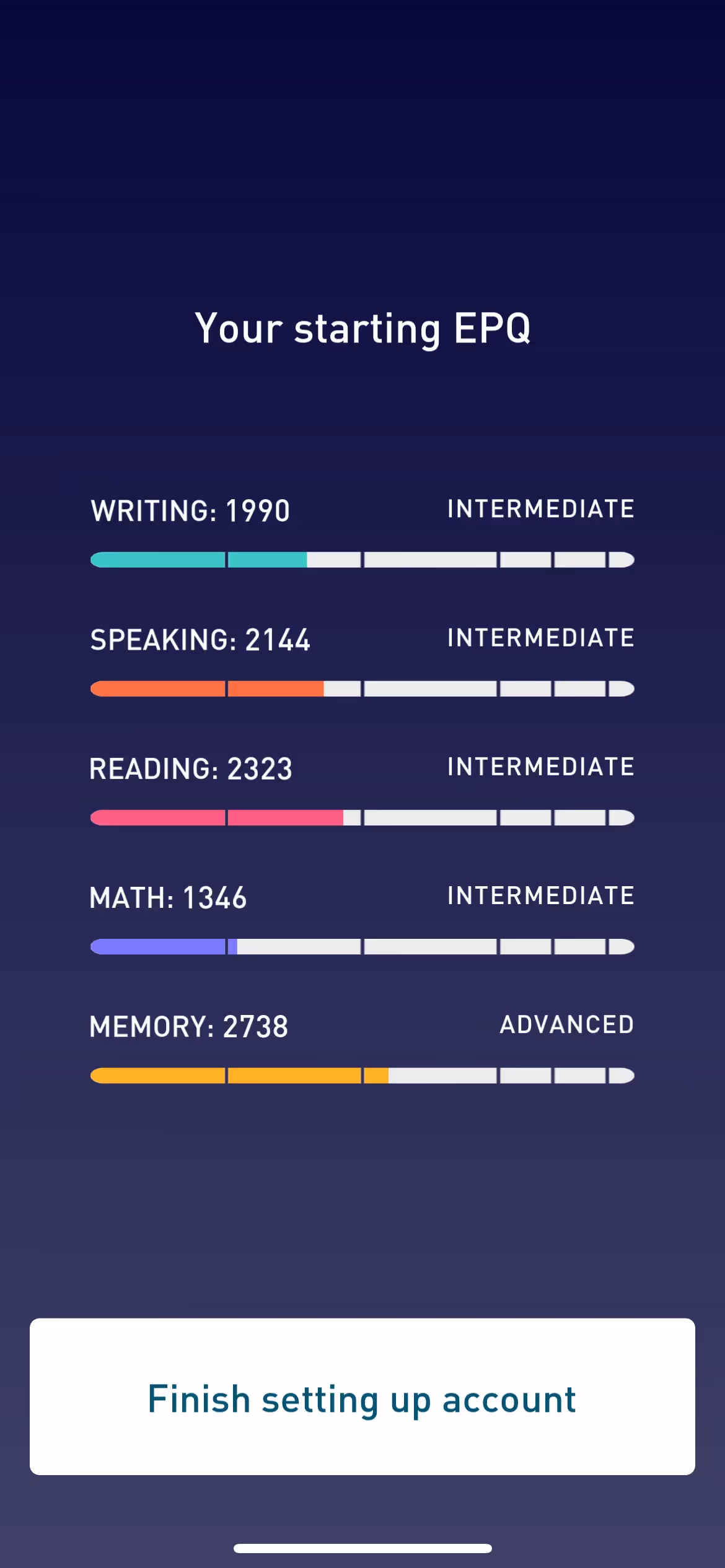 Elevate excels at cognitive skill assessment during setup. The onboarding evaluates current abilities in areas like math, reading, and writing to create personalized training programs targeting specific improvement areas.