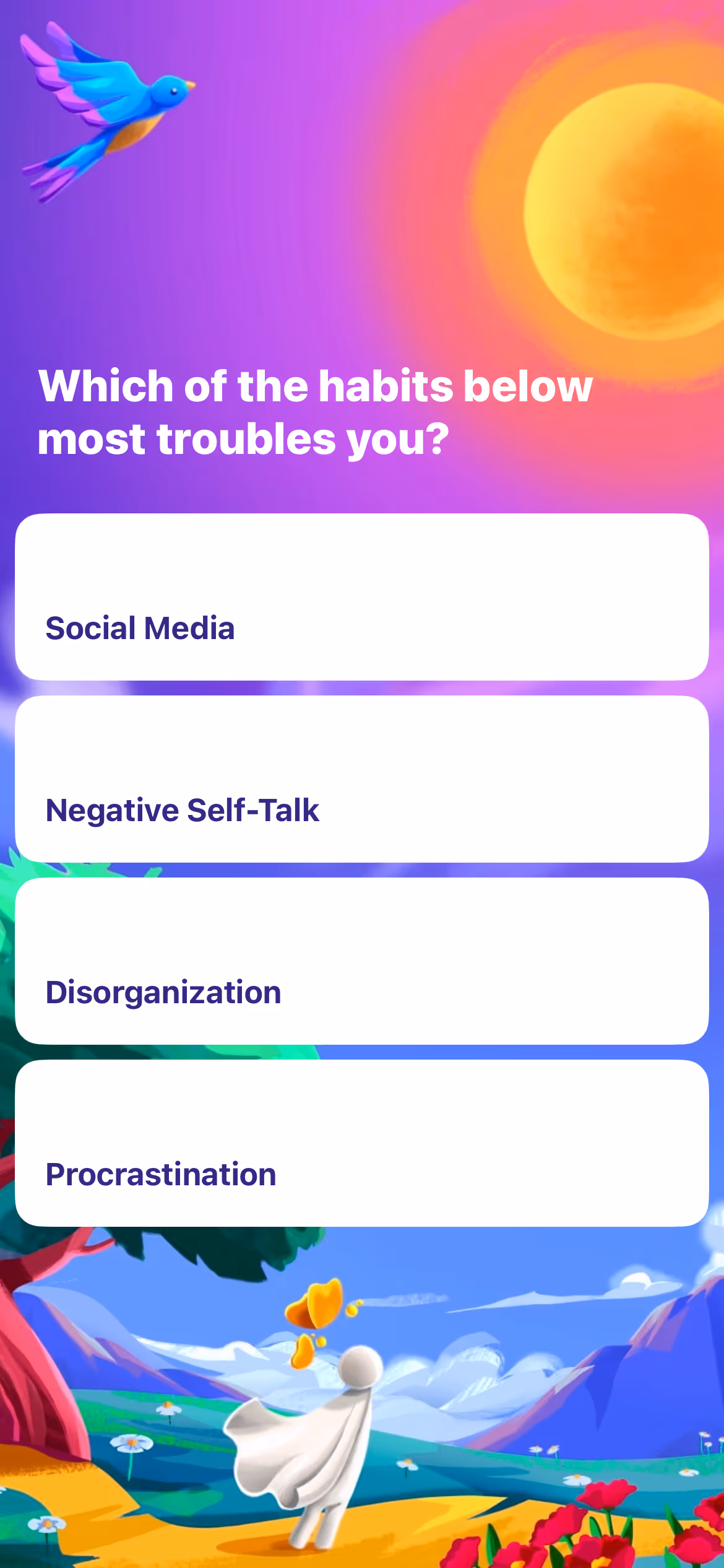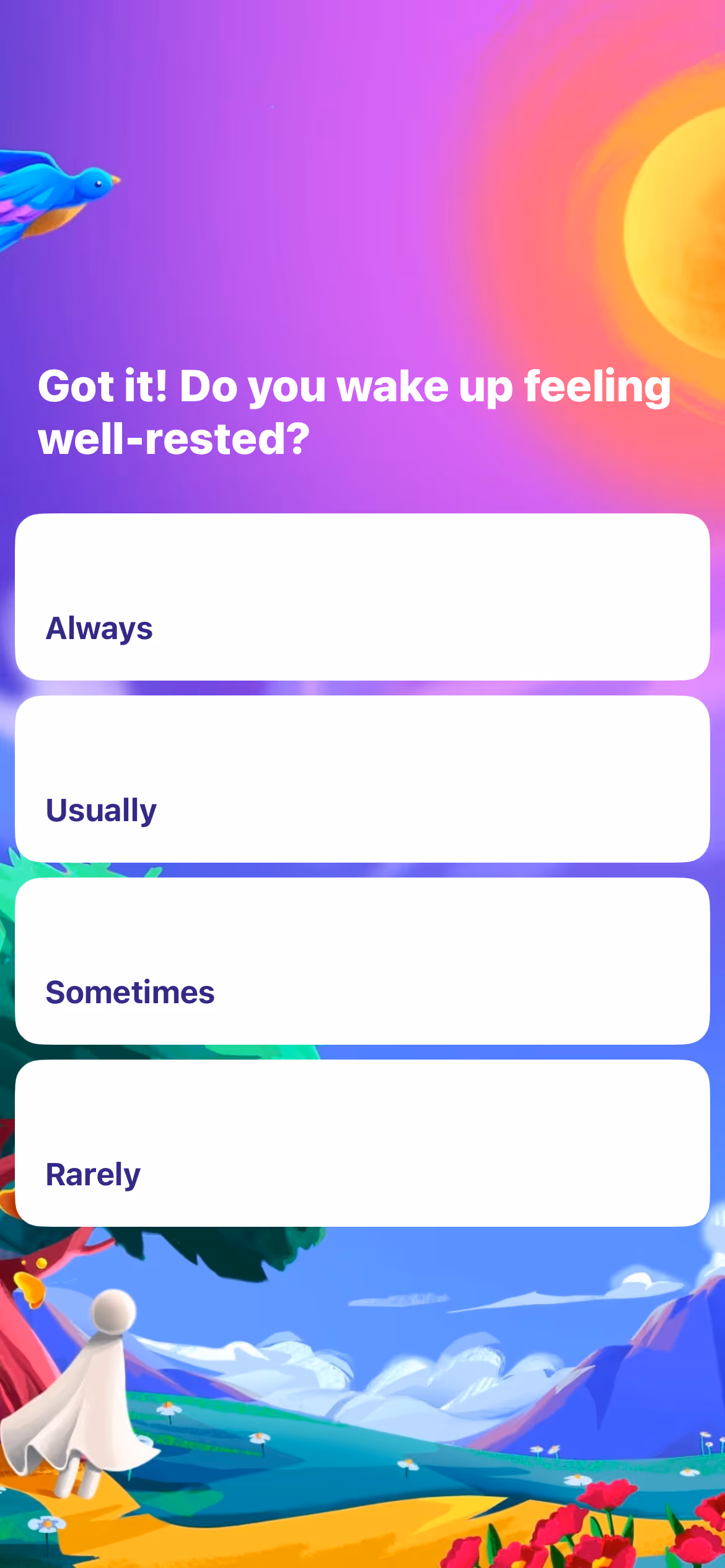 These Fabulous App Onboarding Flow Screens illustrate how the Fabulous app guides users through selecting life goals (fitness, sleep, mindfulness), setting personal routines, and understanding reward mechanics. The flow often includes motivation messaging, optional personalization questions, and permission prompts for reminders.