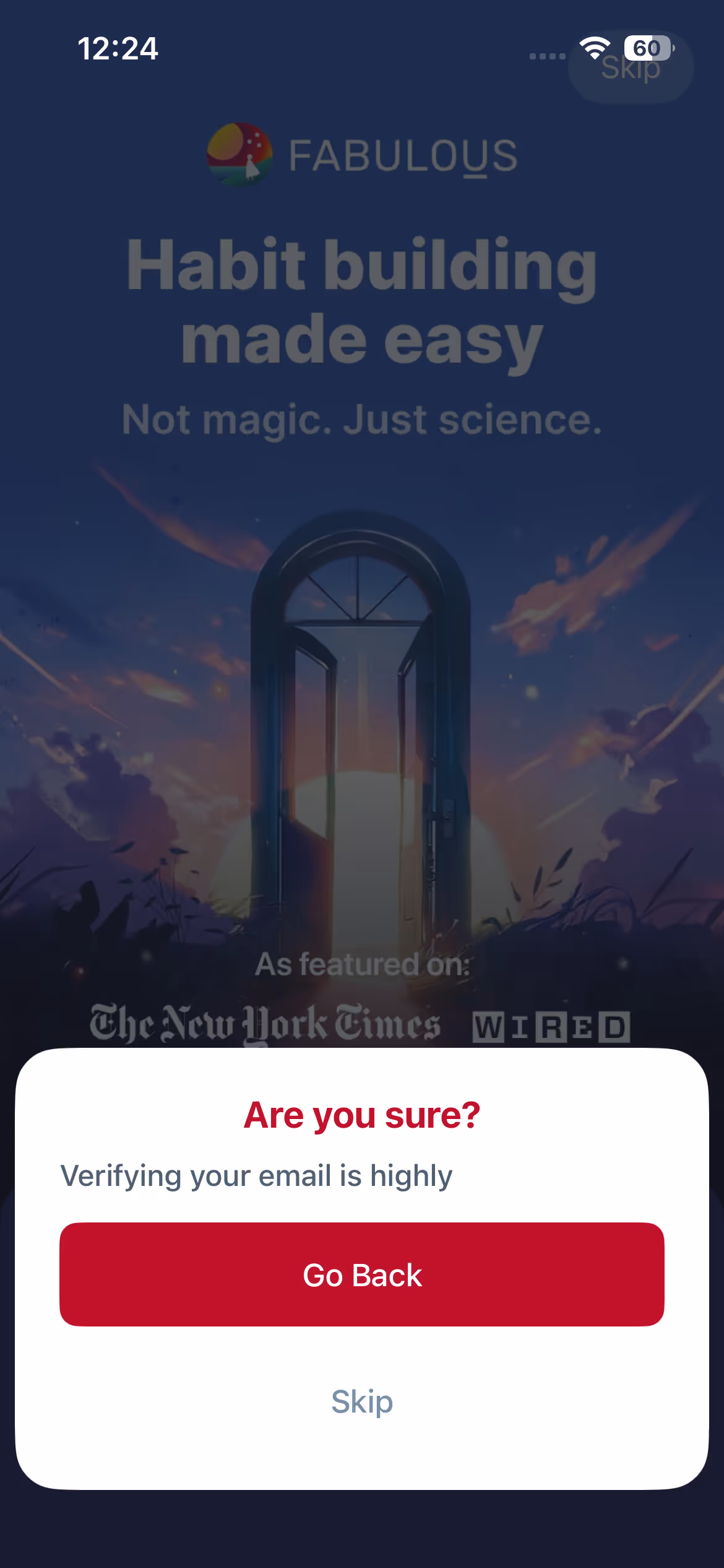 Review the sequence of screenshots to understand how Fabulous designs its onboarding to feel like a structured habit-coach. Also check its email and mobile push notification flows to see how they support ongoing engagement. Use this as reference if you build coaching, self-improvement, or behavior-change apps.