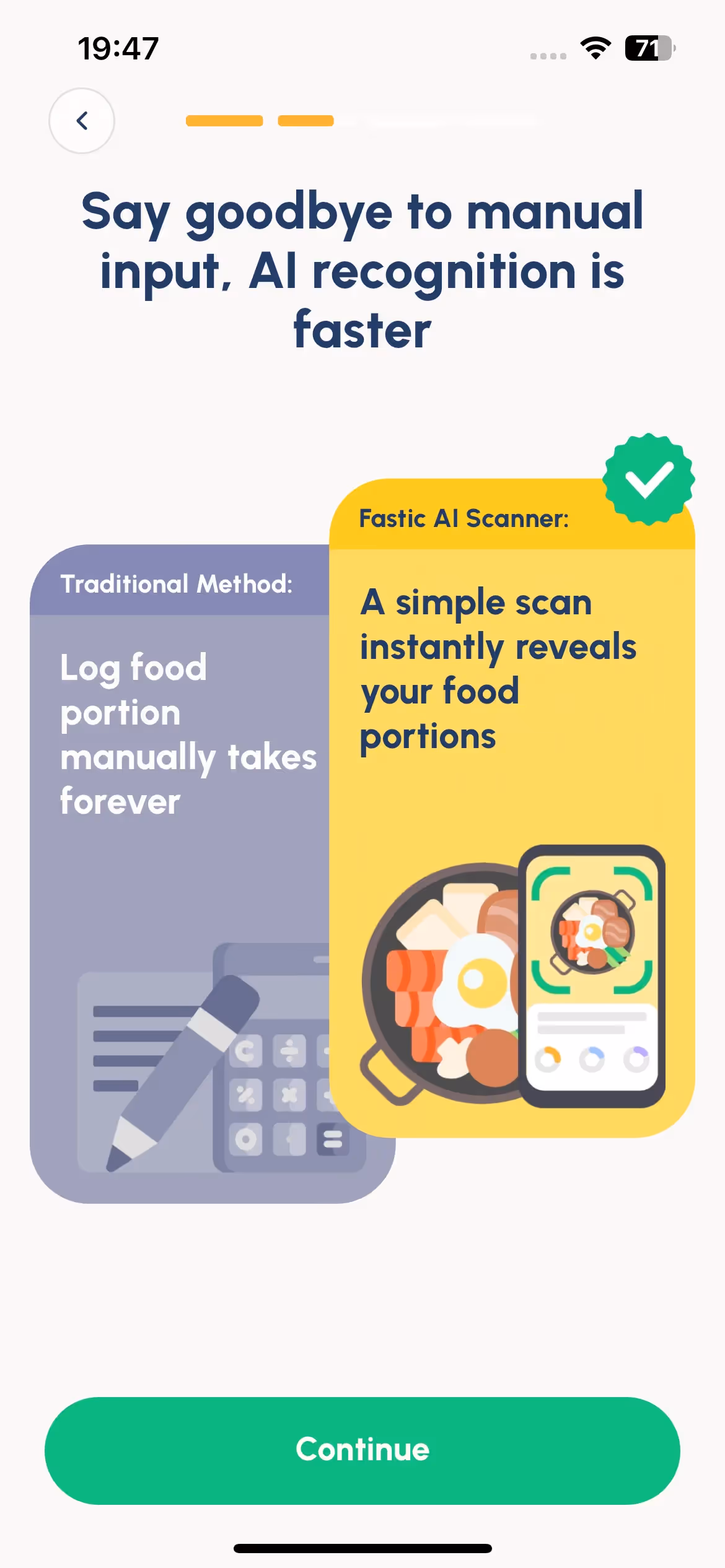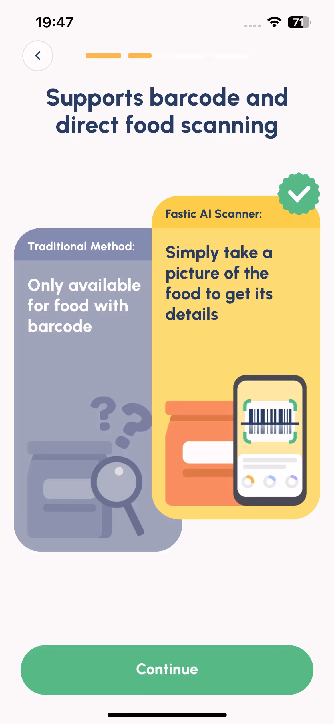 Fastic AI Food Calorie Scanner App Onboarding Flow Screens