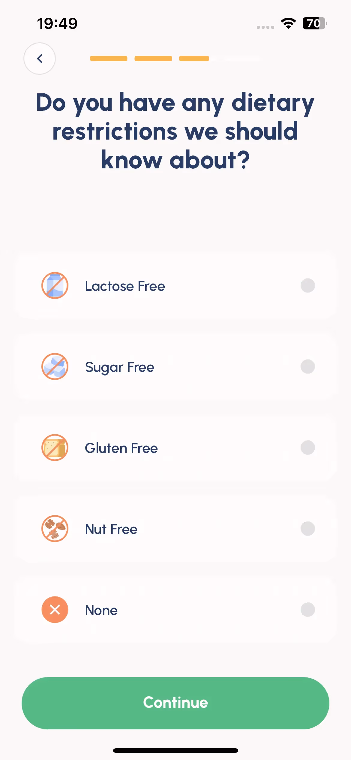 The food recognition education happens hands-on rather than through explanations. Users practice taking photos and see real-time analysis results, building trust in the technology through direct experience.
