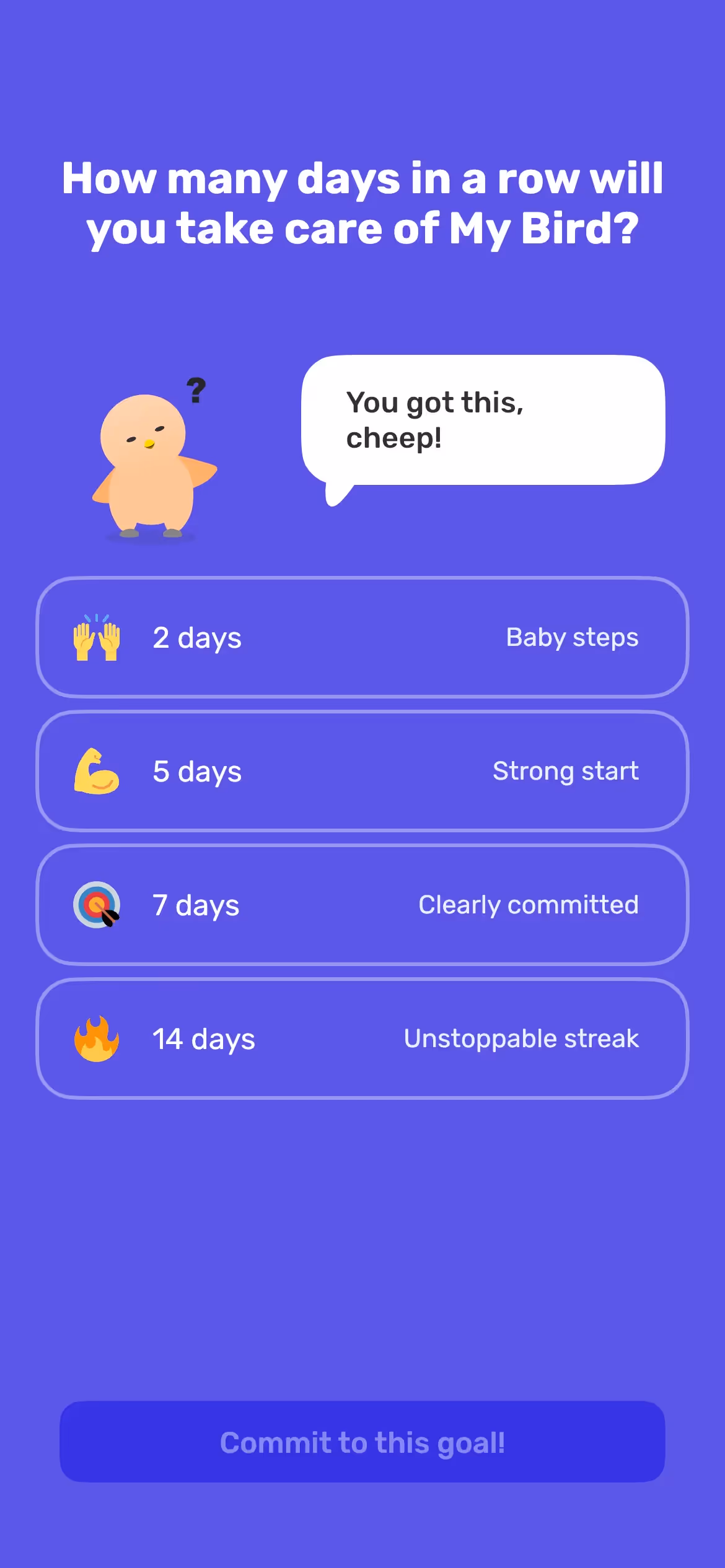 Their habit tracking gamification receives prominent introduction during onboarding. Users understand how completing self-care tasks helps their pet grow and thrive, creating external motivation for internal wellness.