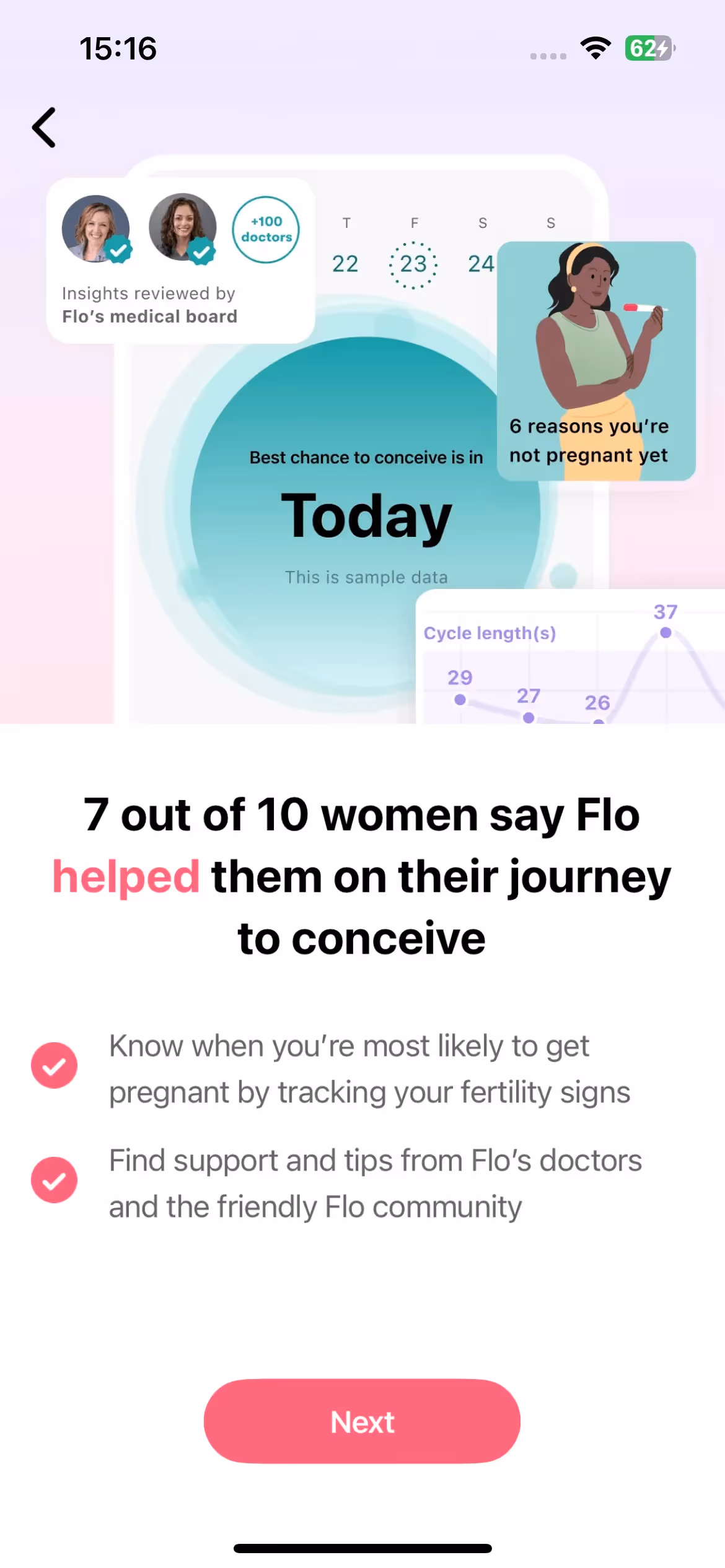 Flo Period & Pregnancy Tracker App Onboarding Flow Screens