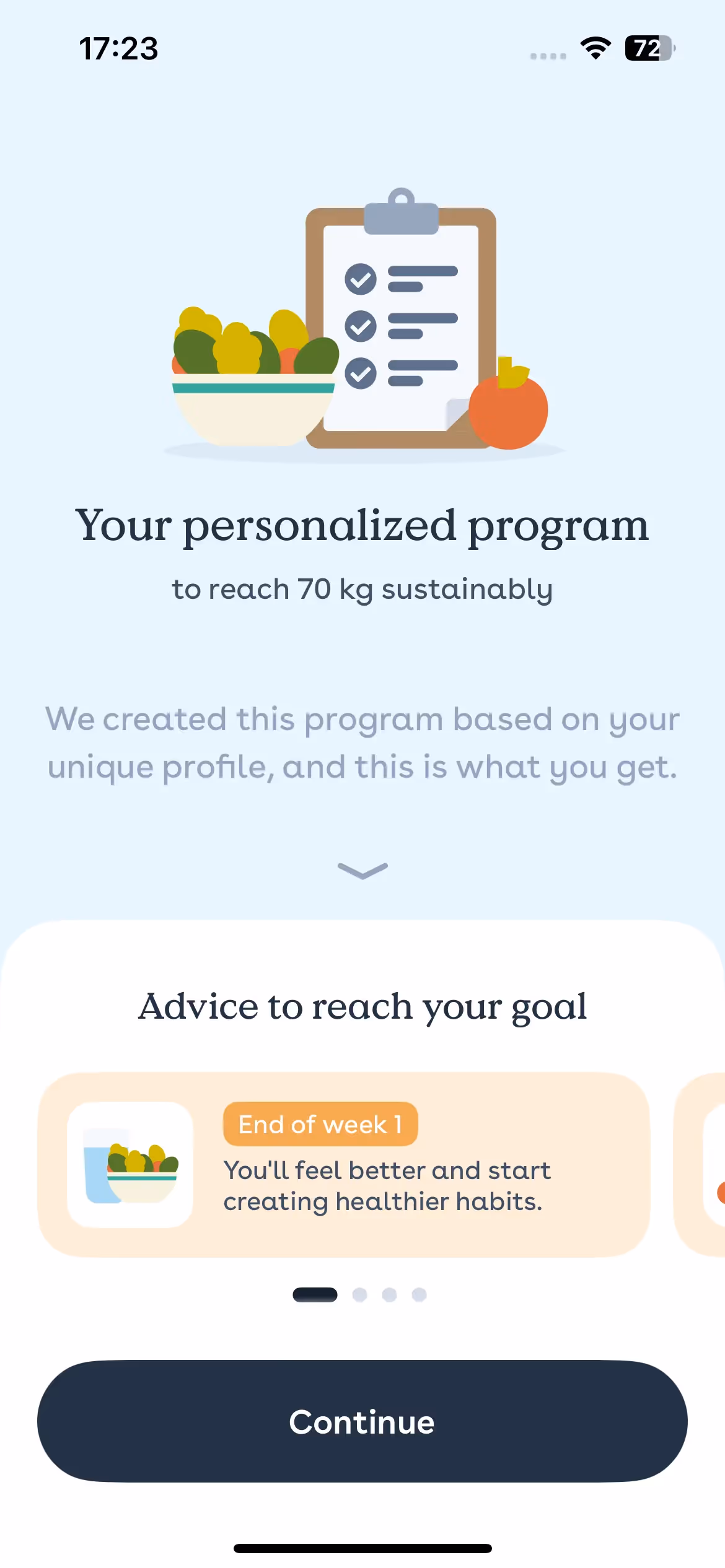 Premium coaching features preview appropriately without overwhelming free users. The onboarding shows how professional nutritionist insights integrate with automated tracking, appealing to users seeking expert guidance.