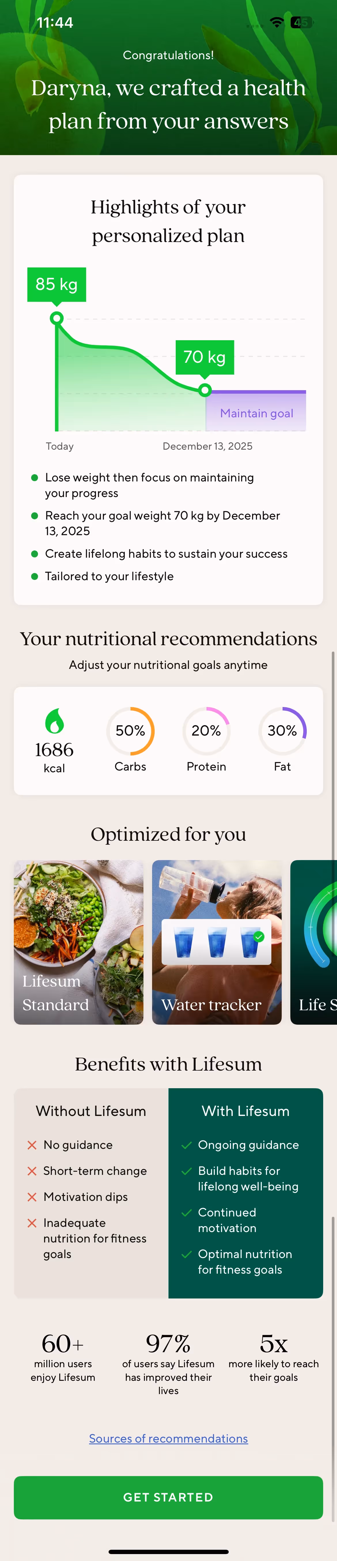 Lifesum's strength lies in lifestyle-based diet plan recommendations. The onboarding quiz goes beyond basic metrics to understand eating patterns, cooking frequency, and food preferences, creating genuinely personalized diet approaches.