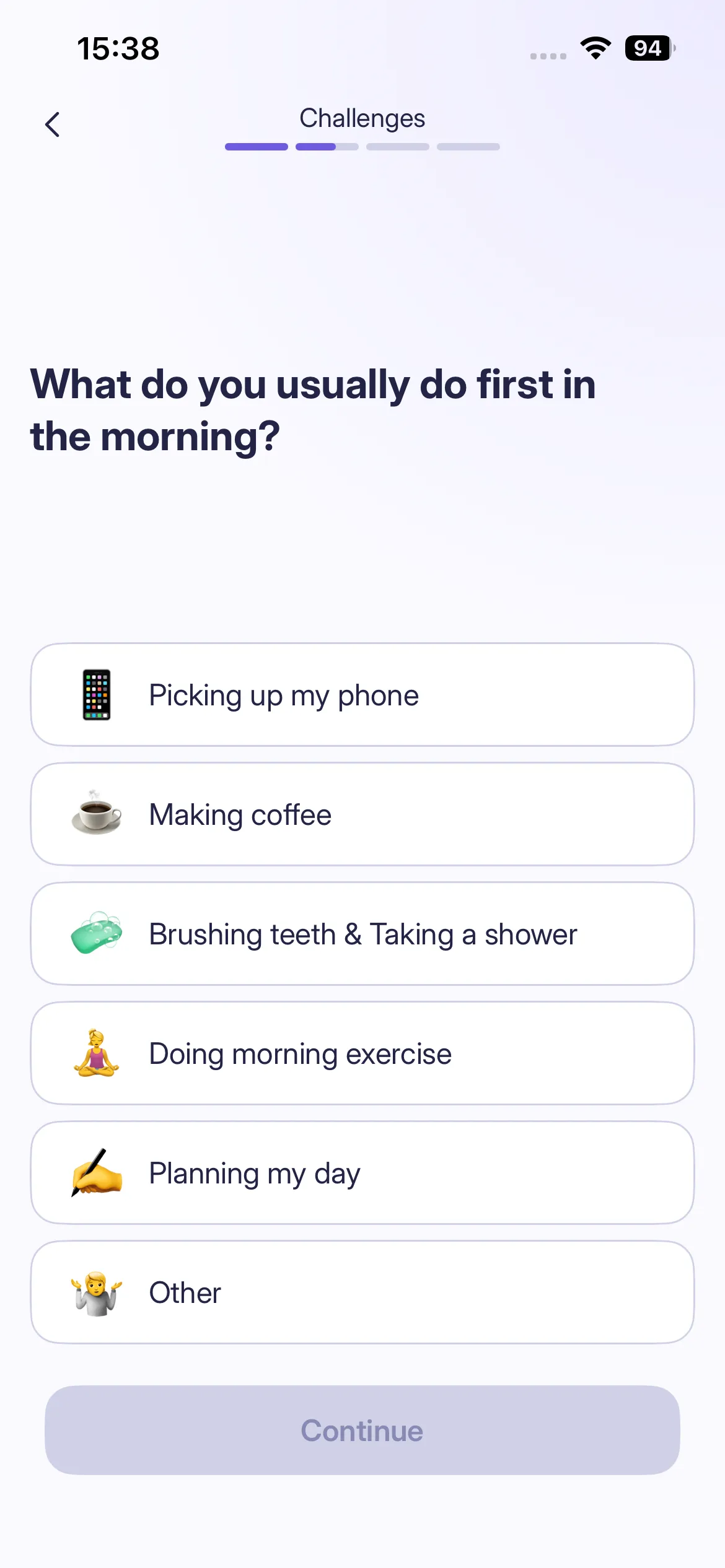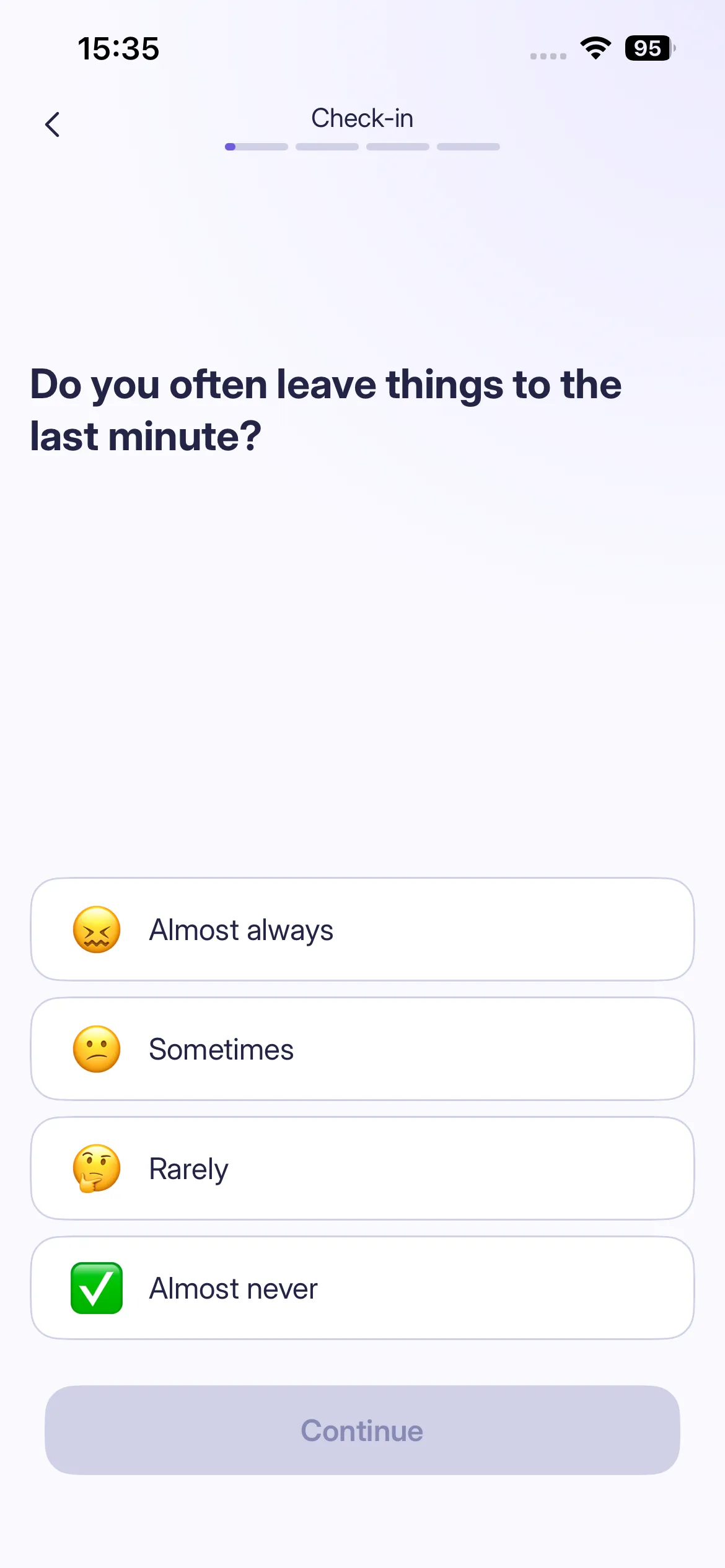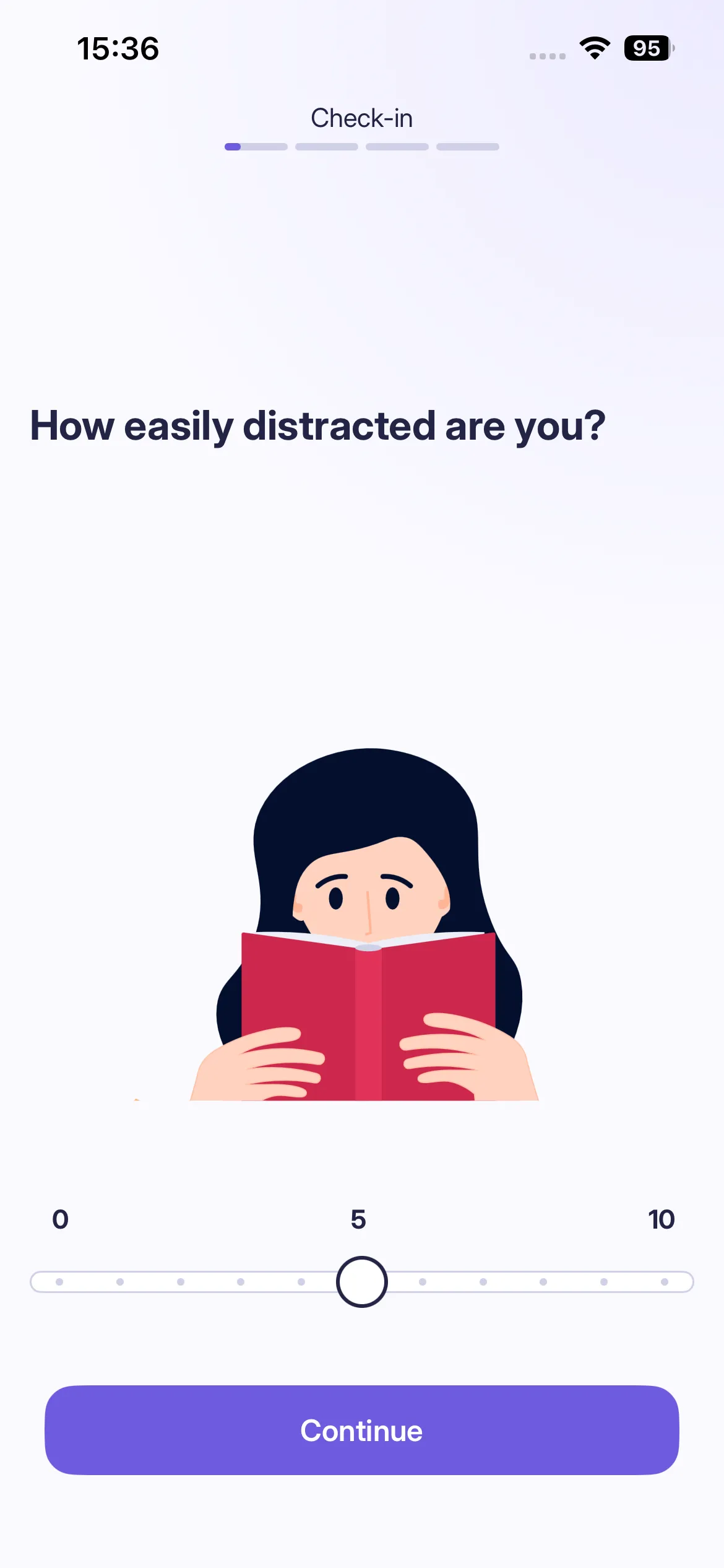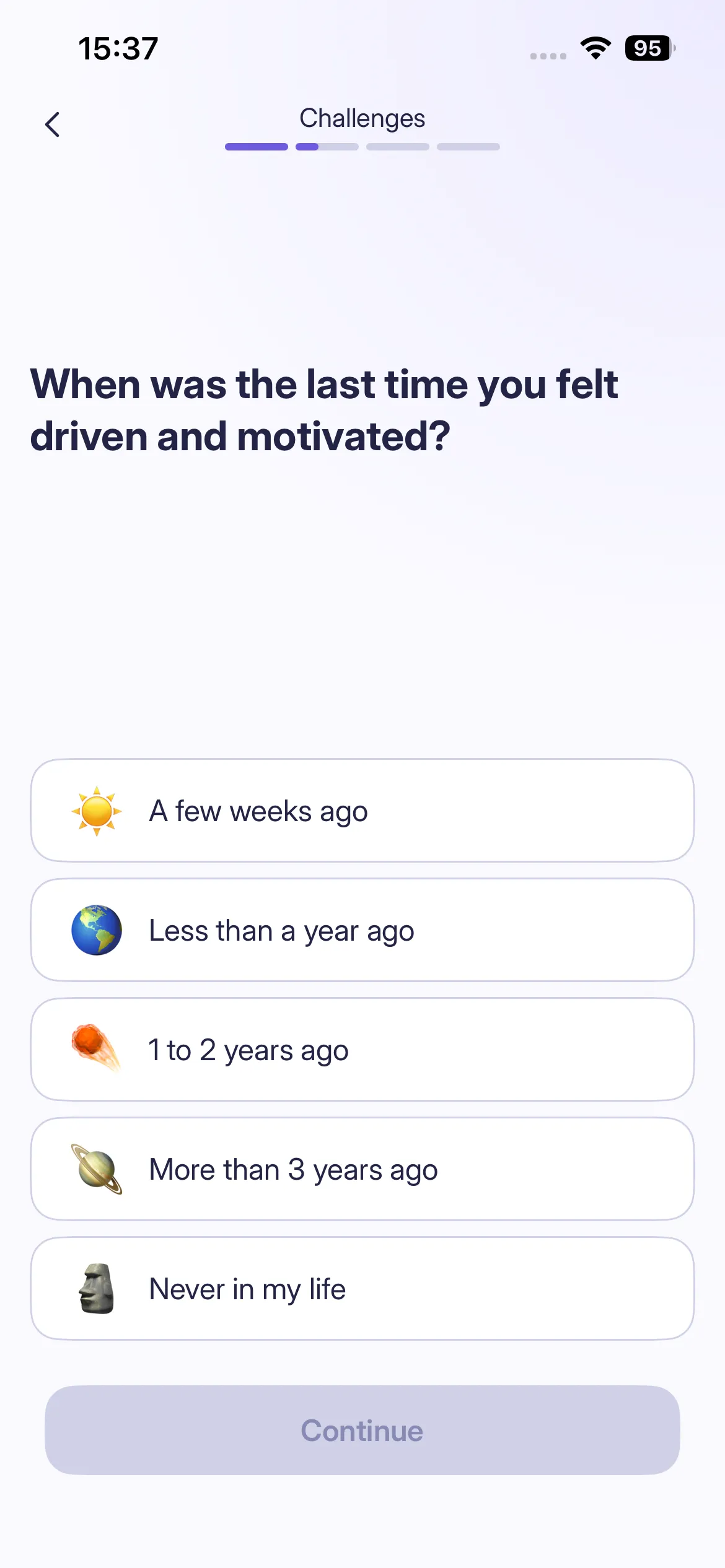 These screens show Liven’s App Onboarding Flow. It begins with a short test to understand user’s well-being goals (e.g. emotional triggers, stress levels), then offers a personalized program of journaling, mood tracking, and mindfulness tools. Daily tasks and self-reflection features are introduced early.