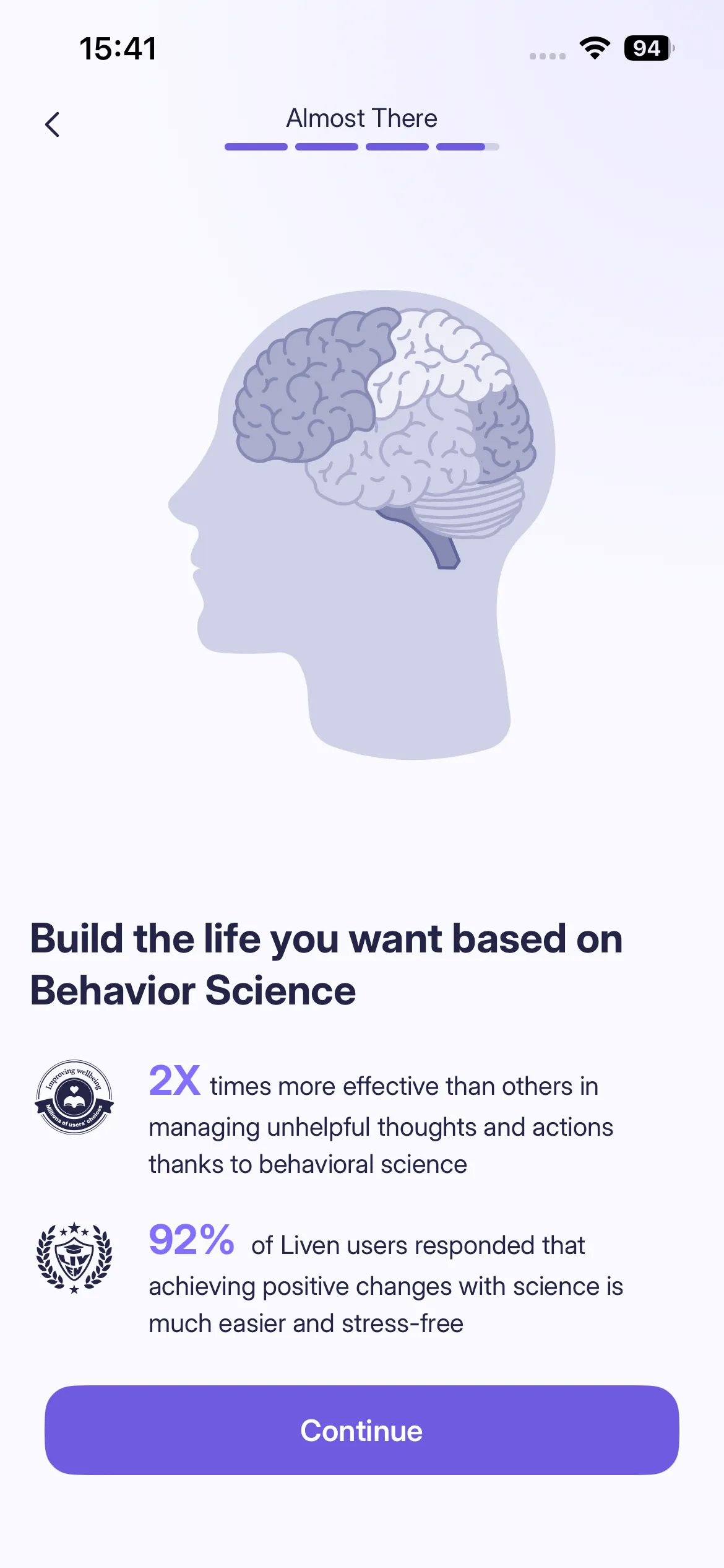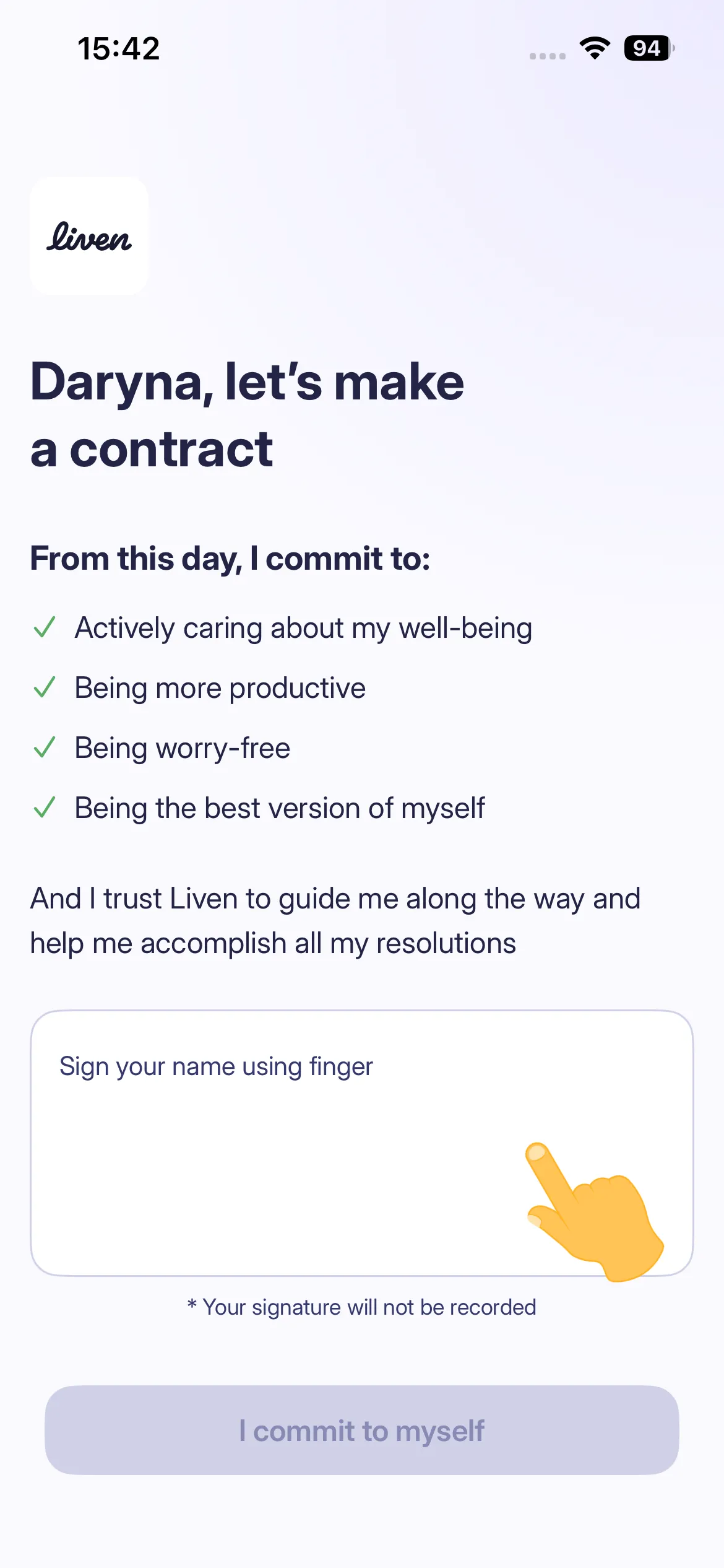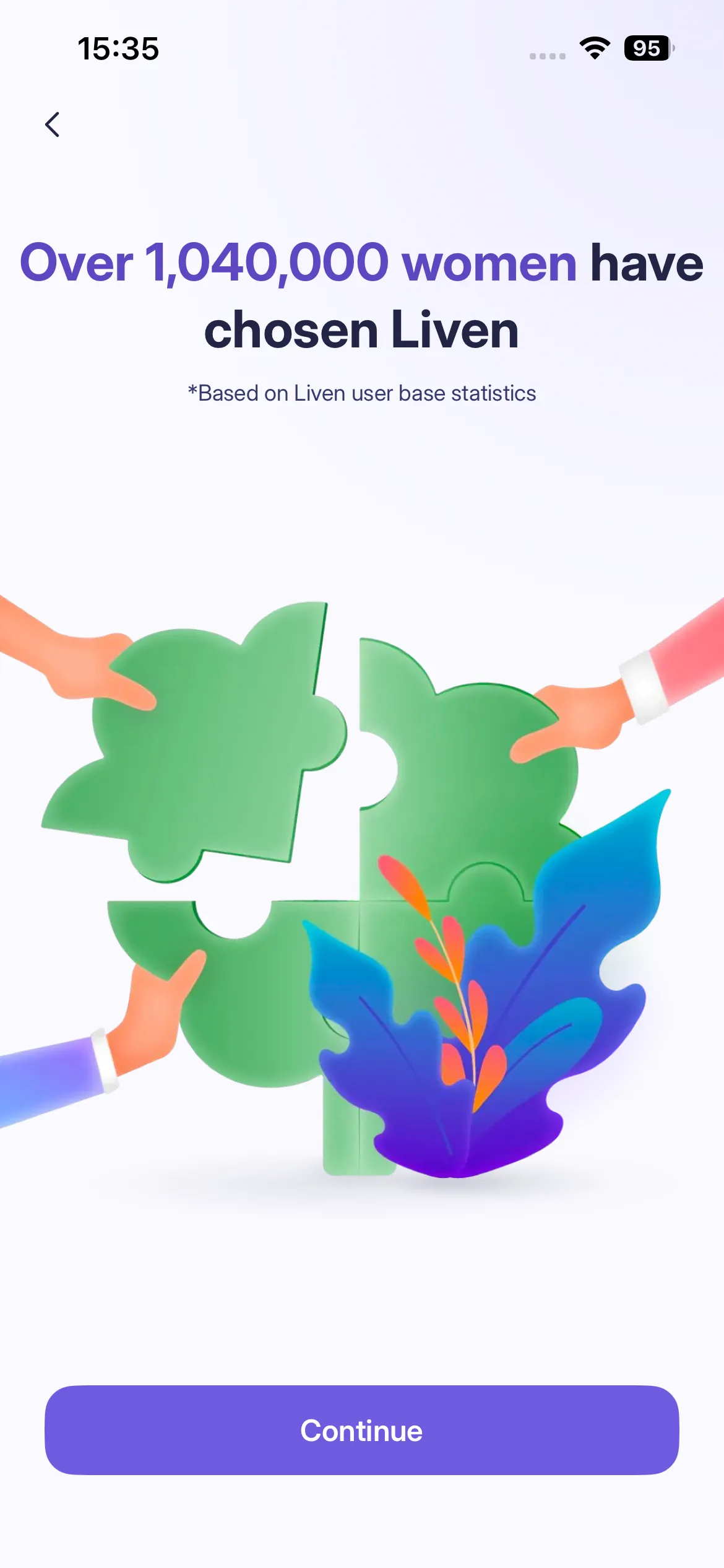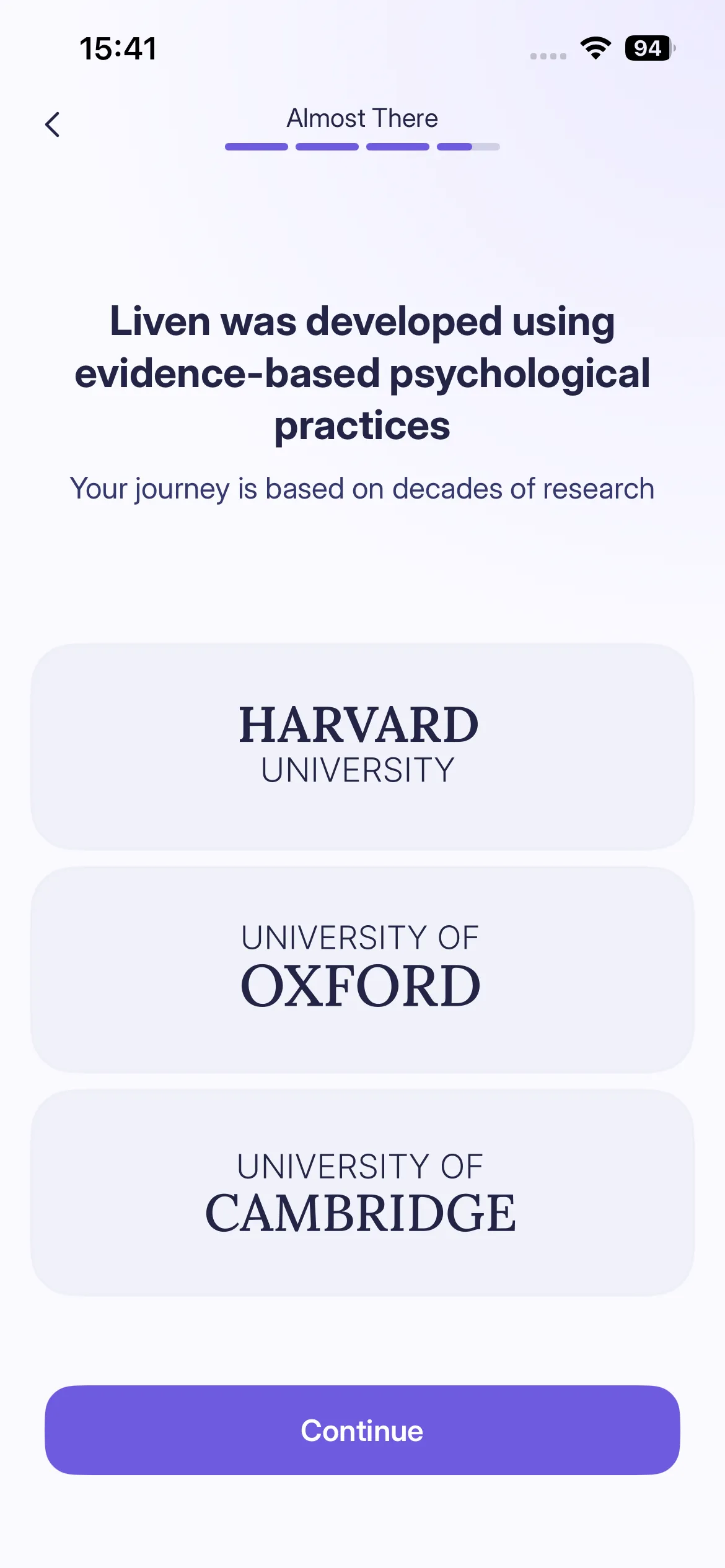 By studying these screens you can see how Liven balances gathering personal data with giving meaningful early value. Check how they follow up via email and push messages to keep users engaged once onboarding completes. A strong example if you build wellbeing or self-care apps.