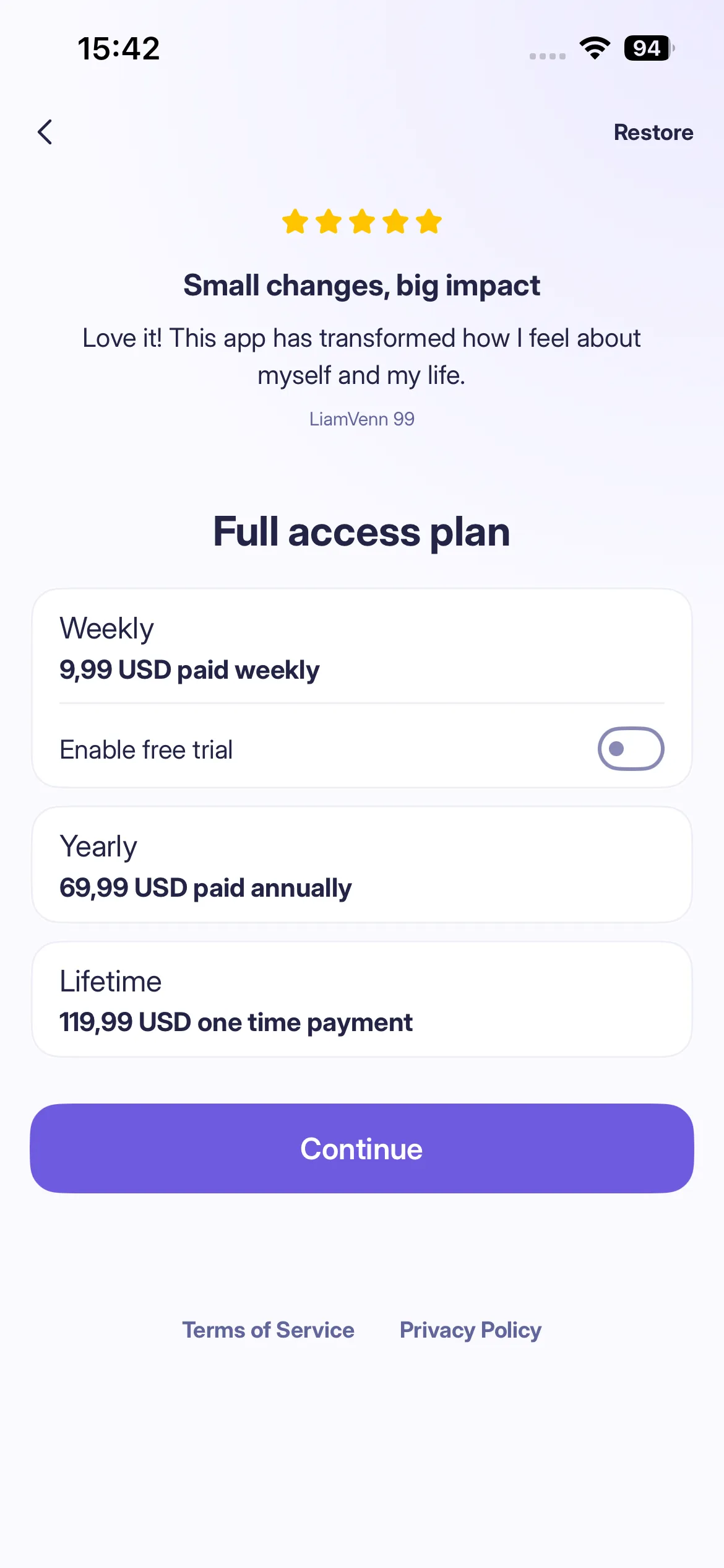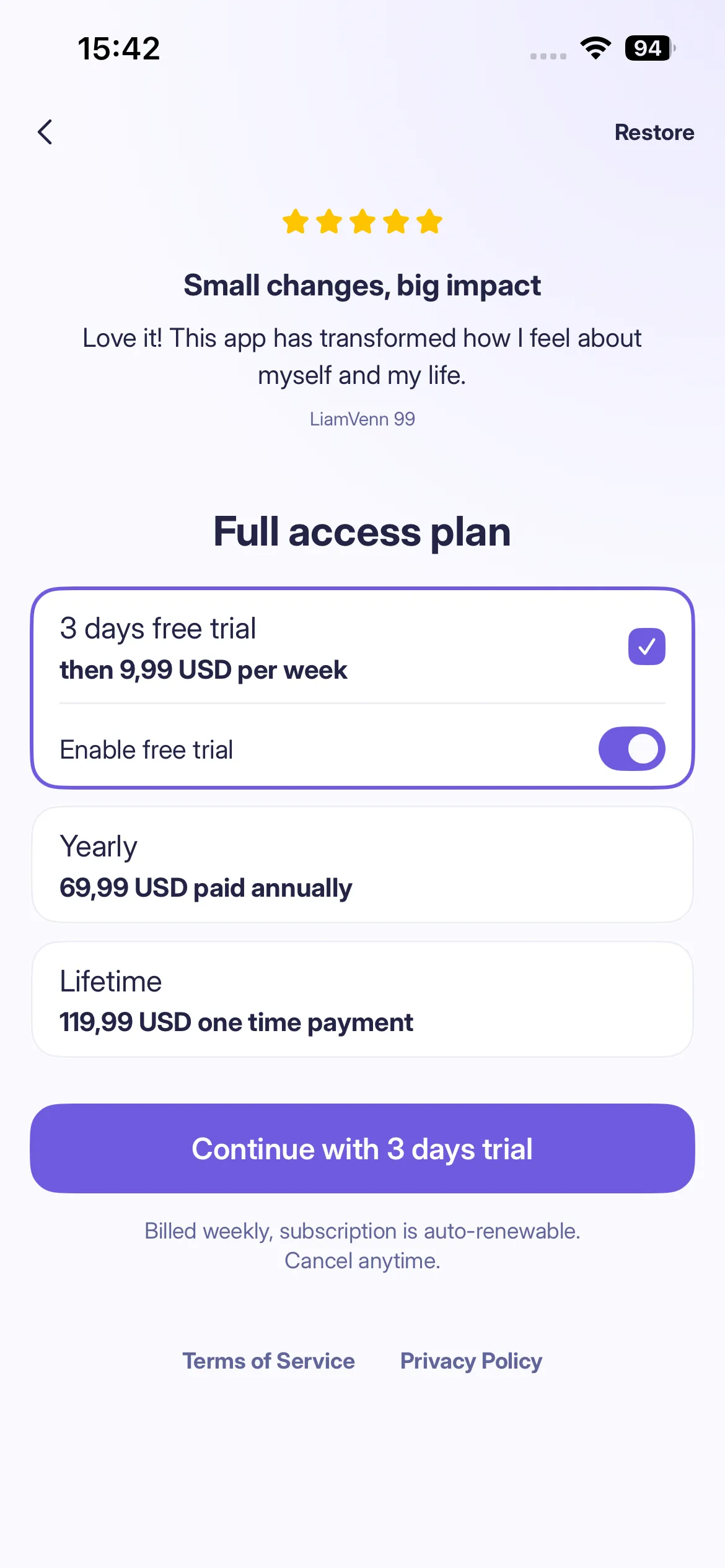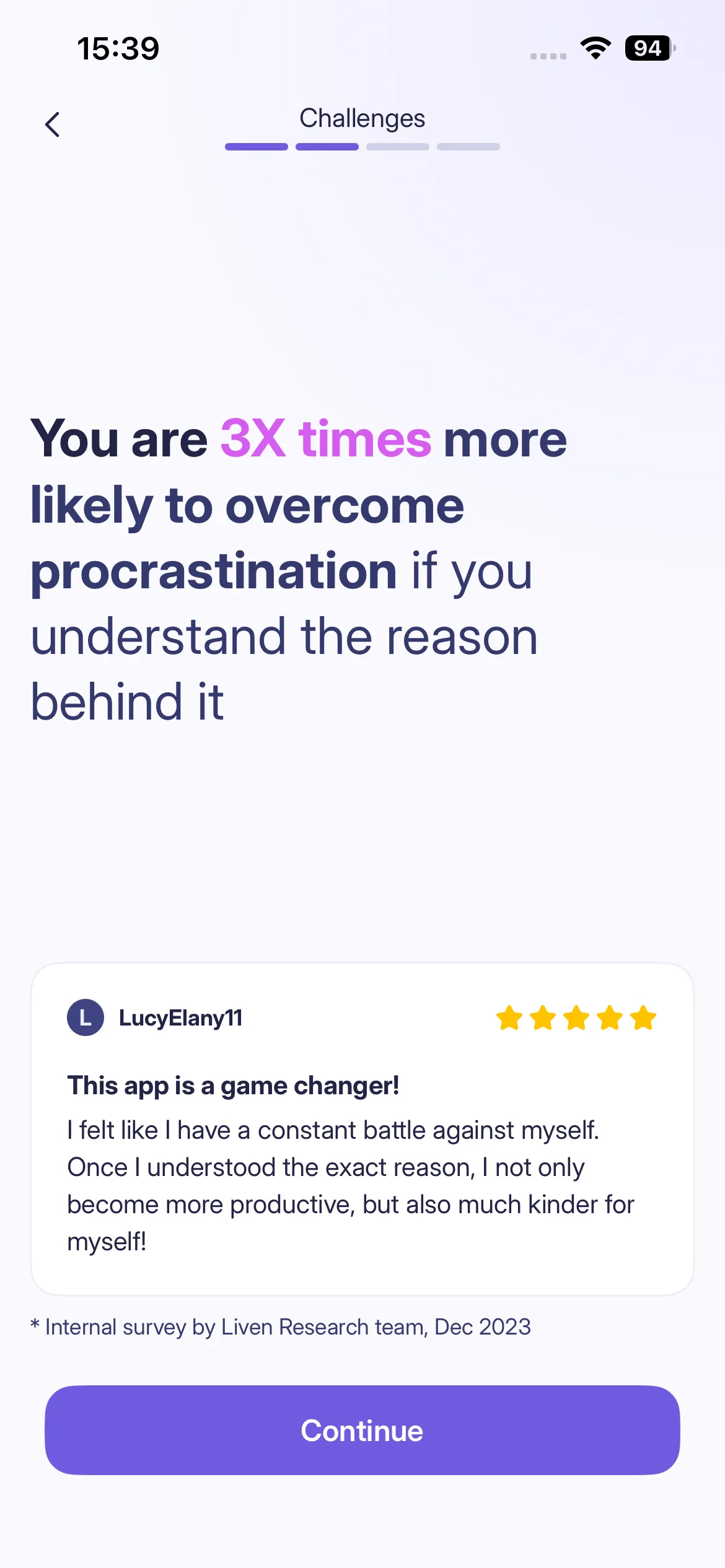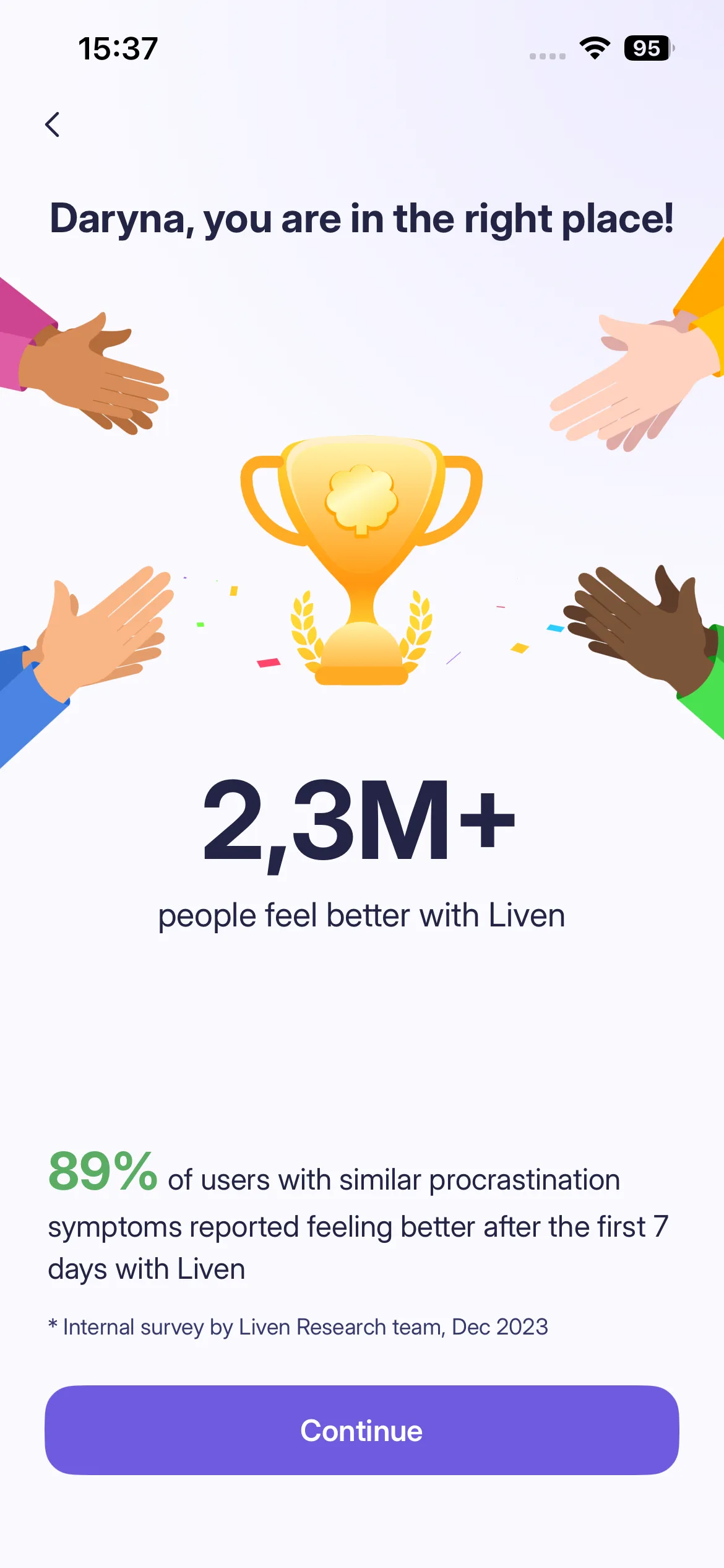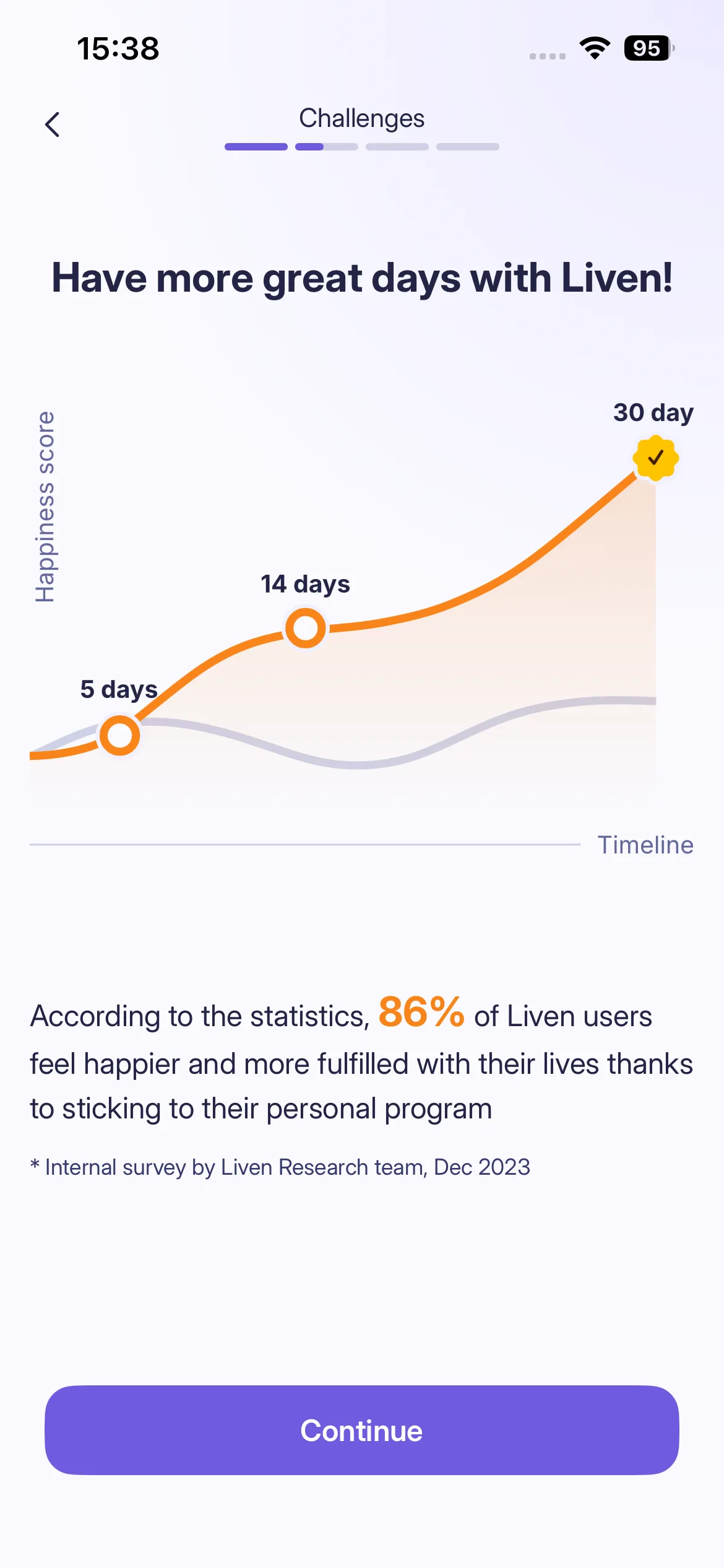 By studying these screens you can see how Liven balances gathering personal data with giving meaningful early value. Check how they follow up via email and push messages to keep users engaged once onboarding completes. A strong example if you build wellbeing or self-care apps.