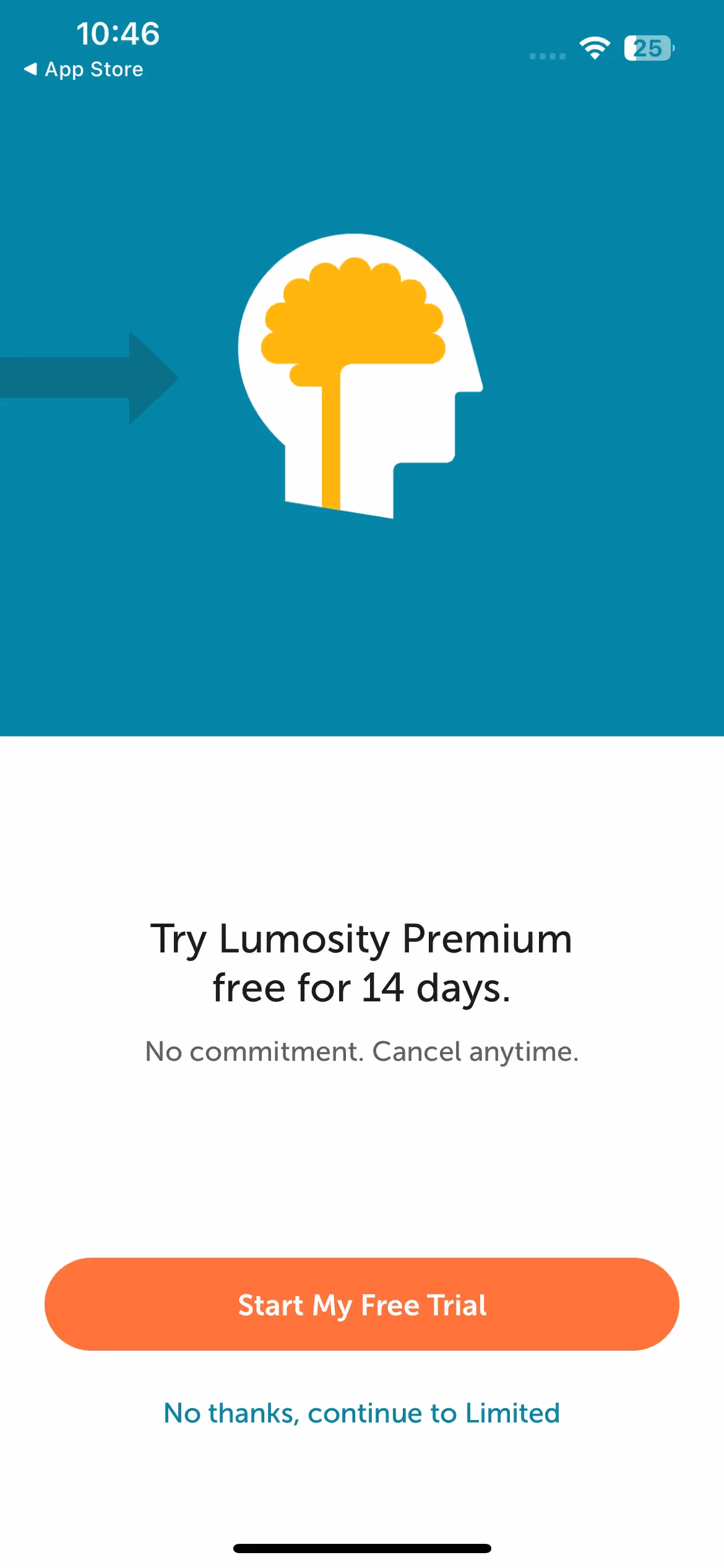 Lumosity's strength lies in scientific foundation explanation during setup. The onboarding presents research backing and cognitive science principles that support brain training effectiveness.