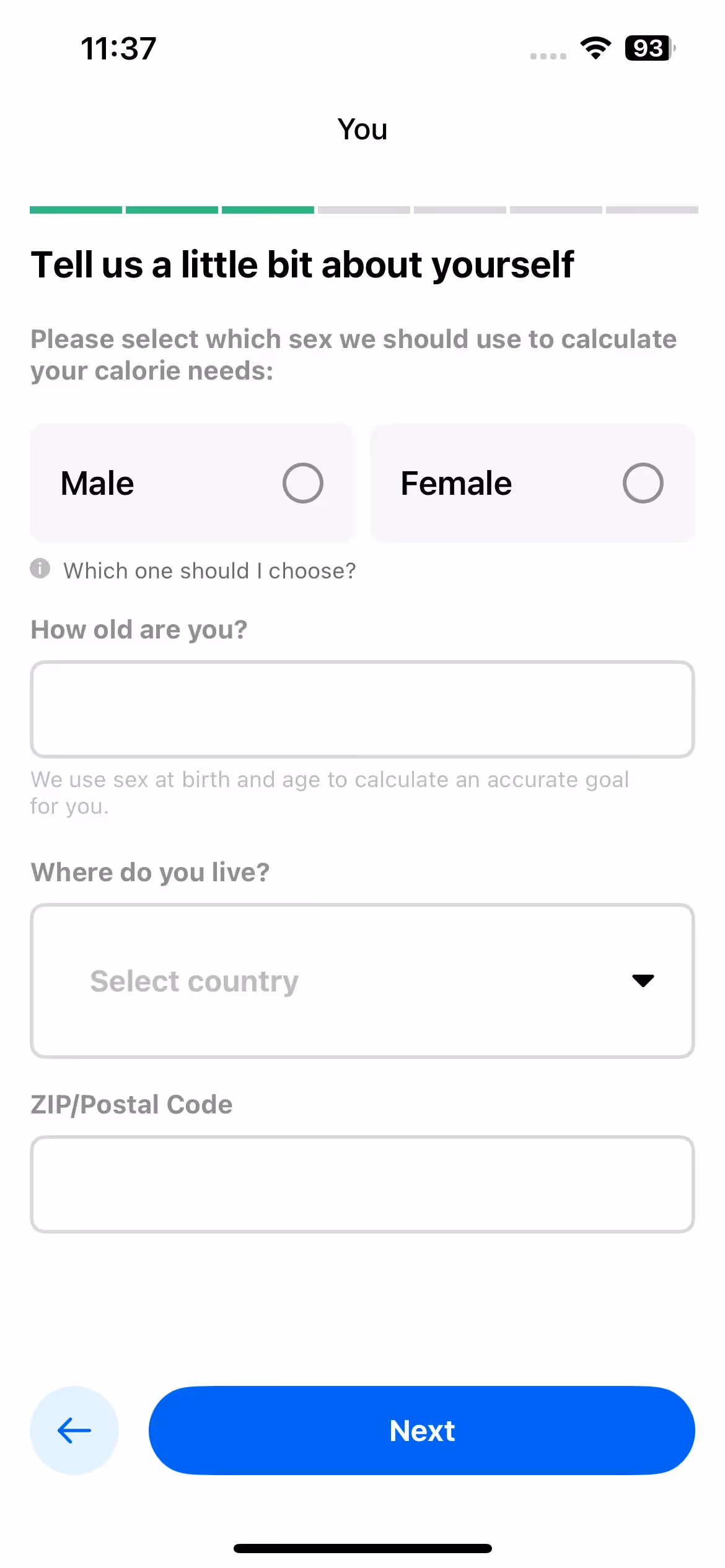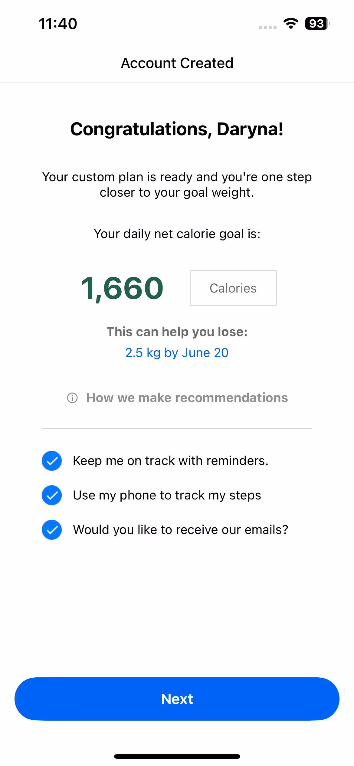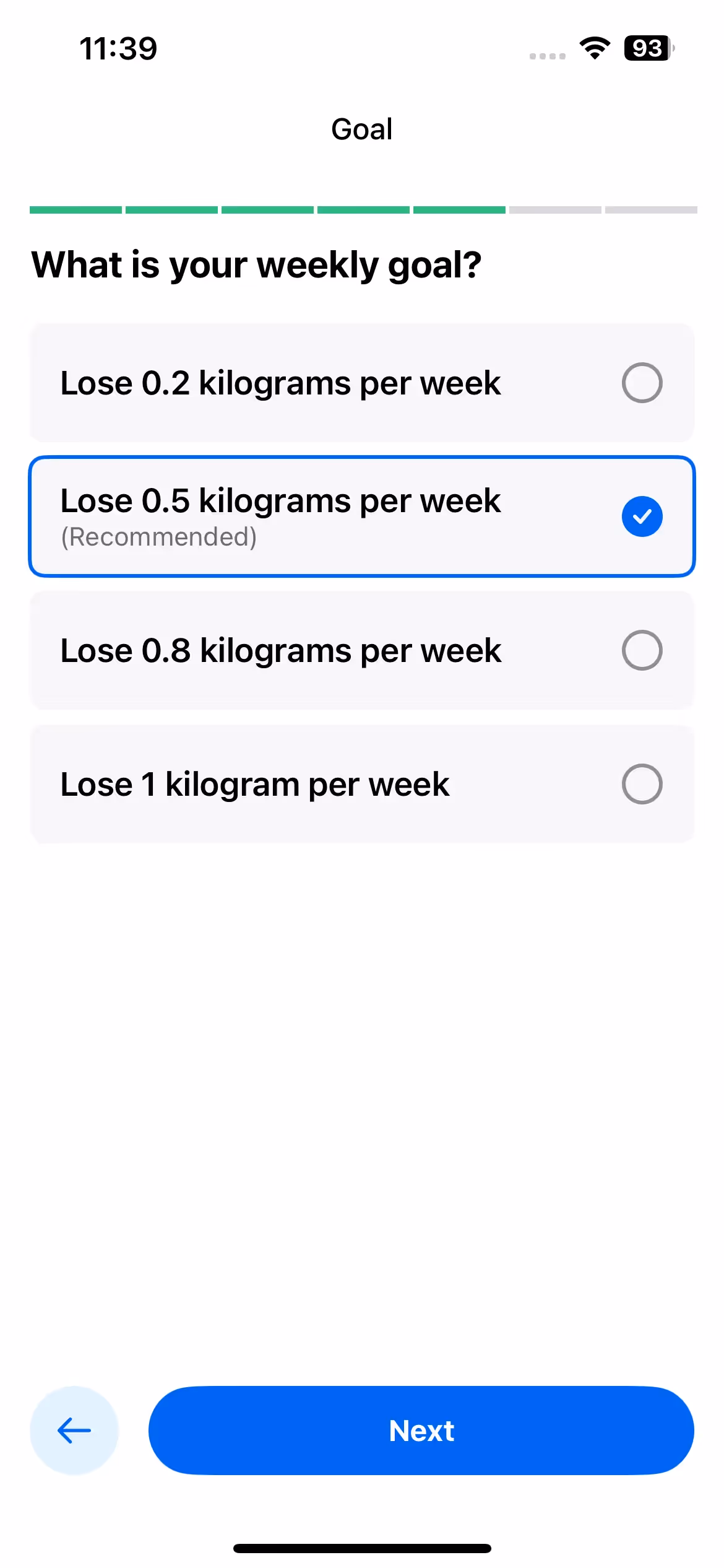 Their approach starts with clear goal identification—weight loss, maintenance, or gain—then immediately calculates personalized calorie targets. Users see their daily budget before understanding complex features, creating instant relevance and motivation to engage.