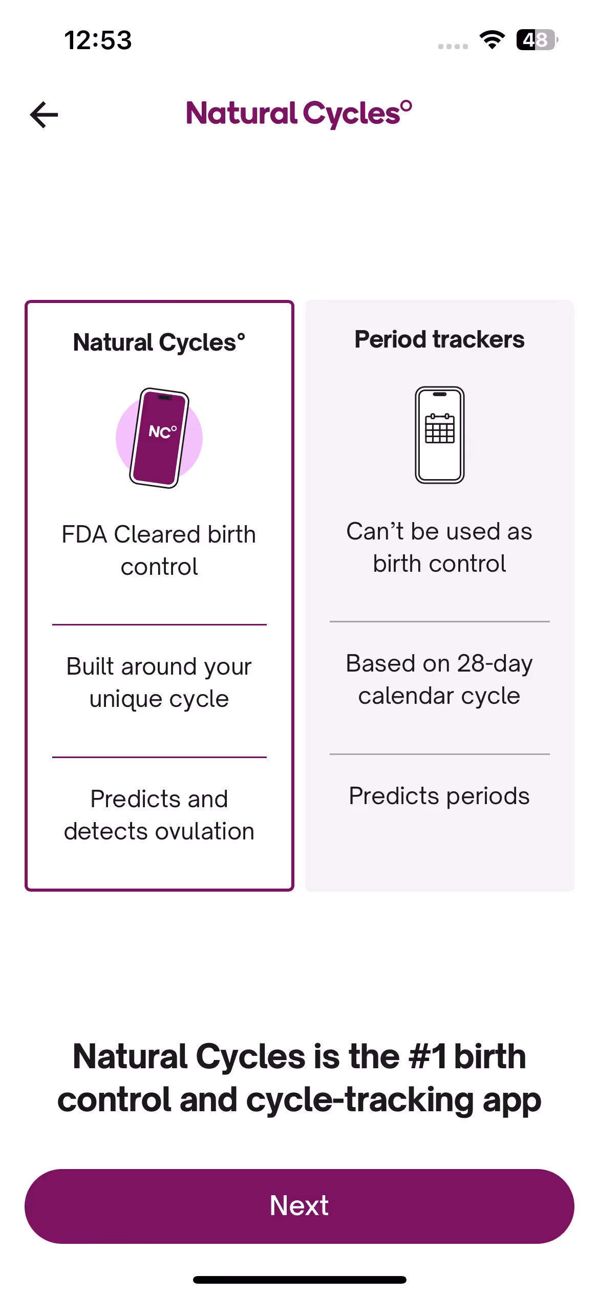 Natural Cycles: Birth Control App Onboarding Flow Screens