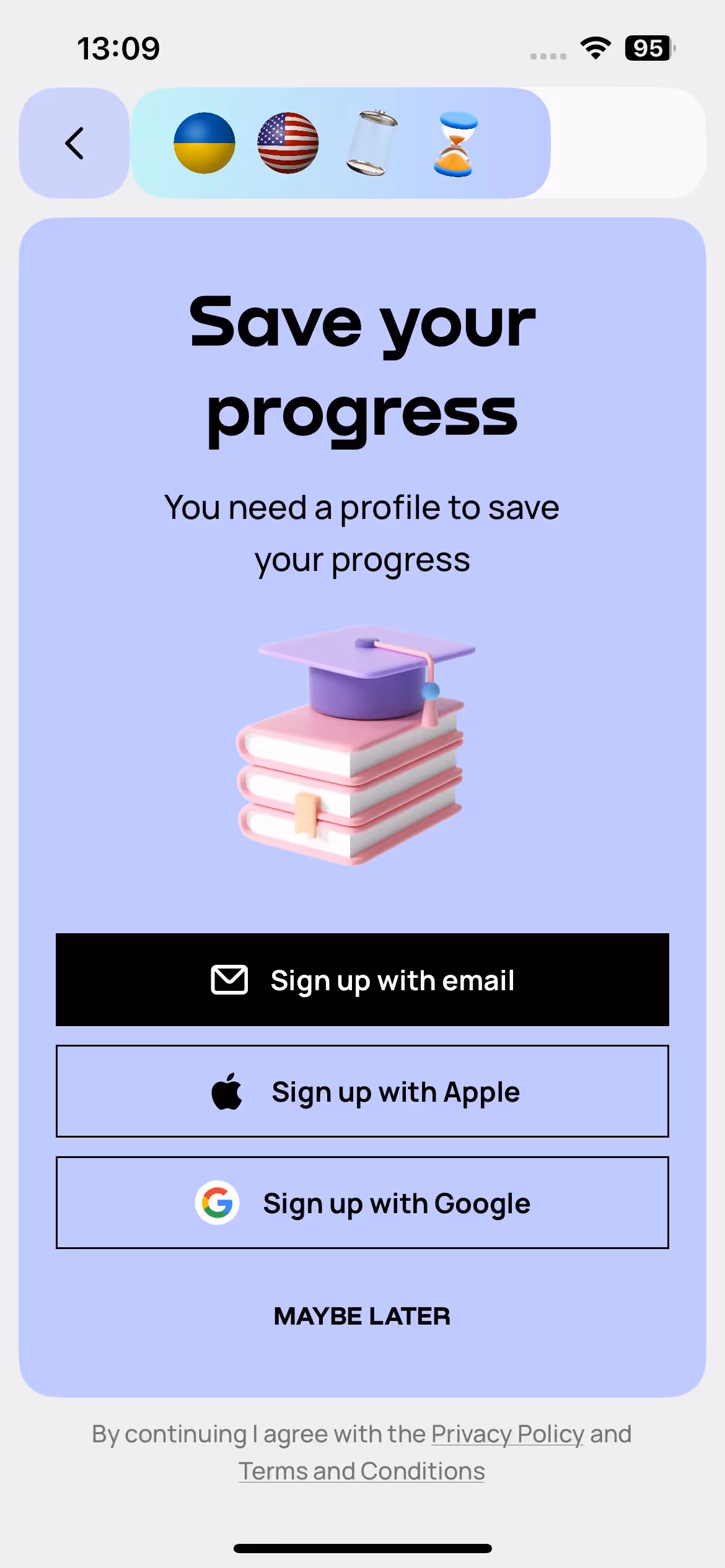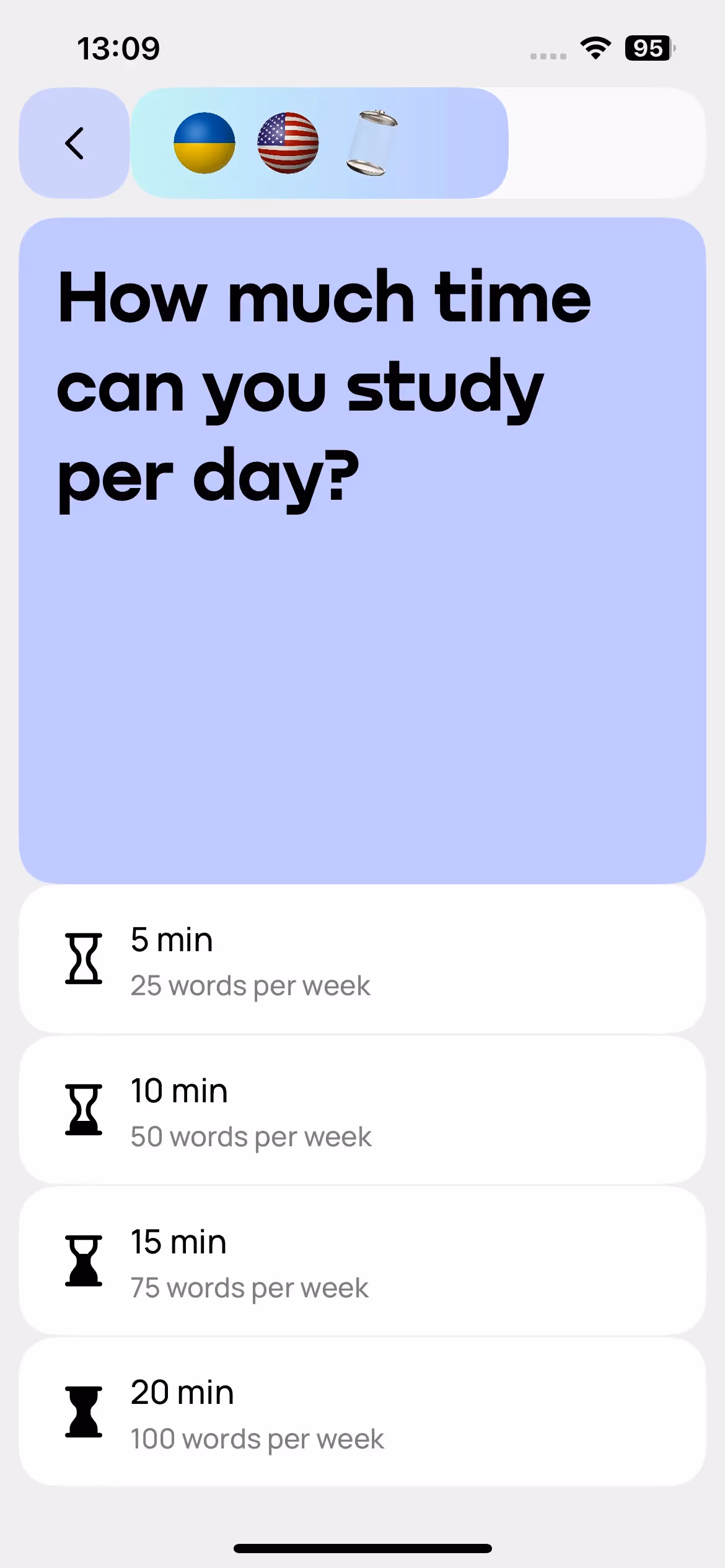 Promova's approach emphasizes learning efficiency during setup. The onboarding assesses available study time and proficiency goals to create optimized lesson plans that maximize progress within realistic schedules.