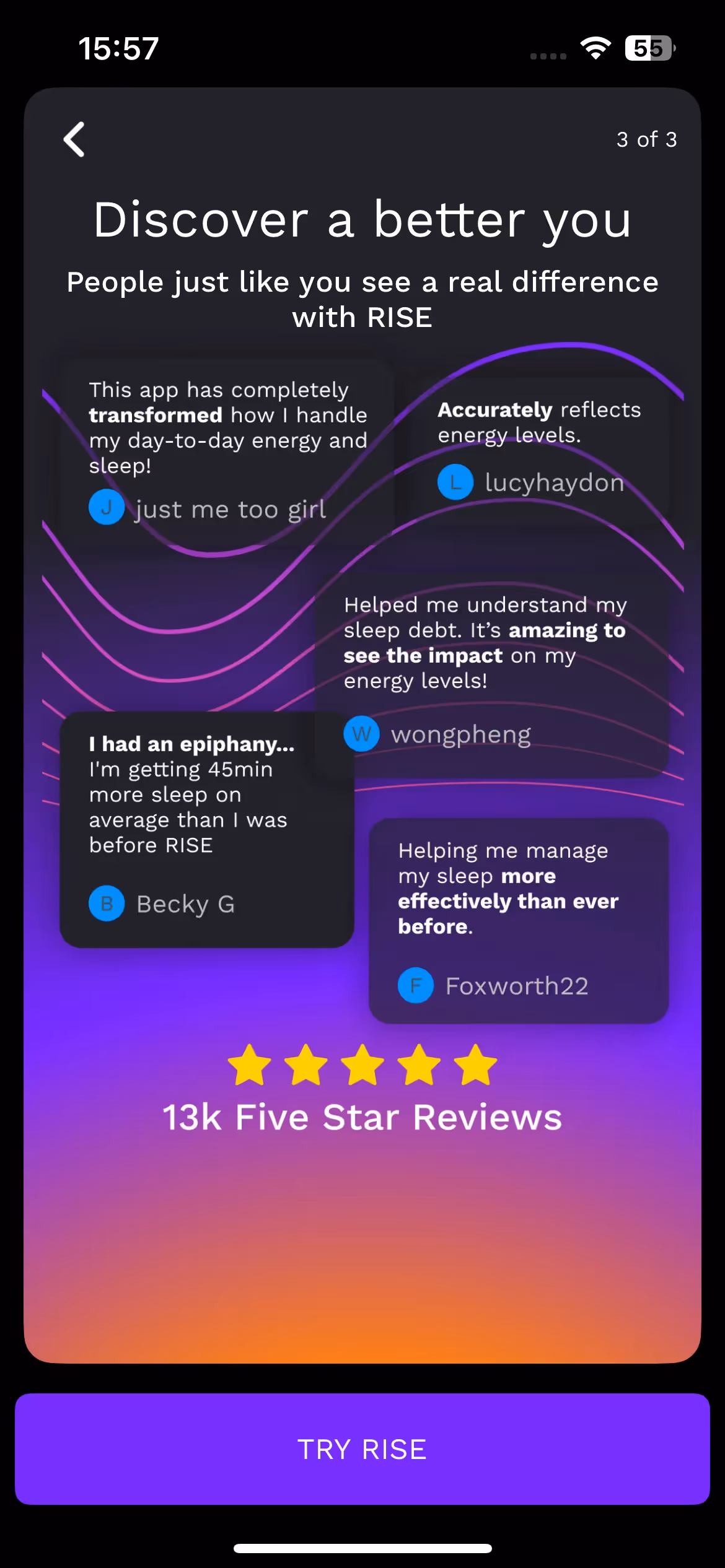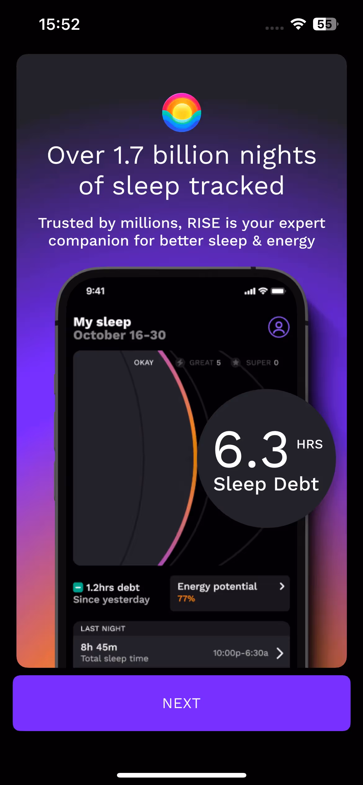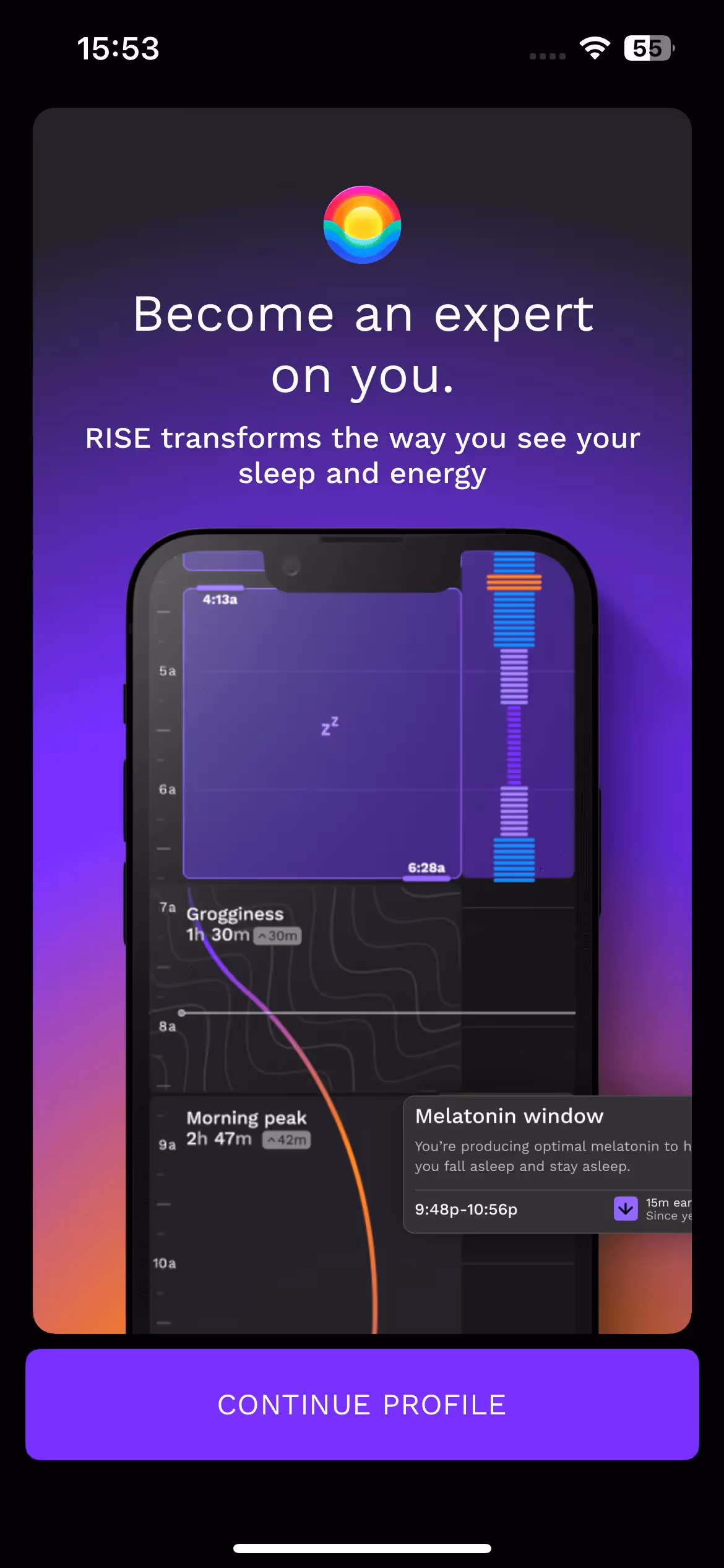 What makes a sleep app focus on energy rather than just sleep quality? RISE's onboarding demonstrates how sleep debt science and circadian rhythm optimization can transform how users think about daily energy management.