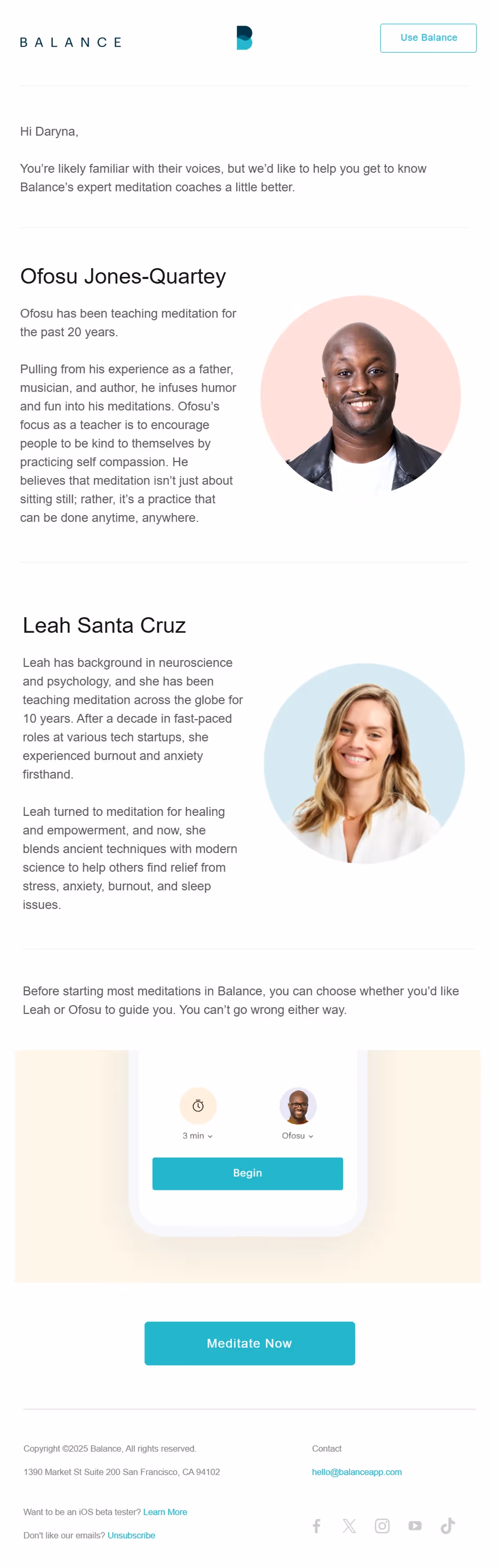 How does a personalized meditation app create adaptive email experiences that evolve with user development? Balance's email strategy showcases how content customization and progress tracking can tailor wellness support to individual growth.