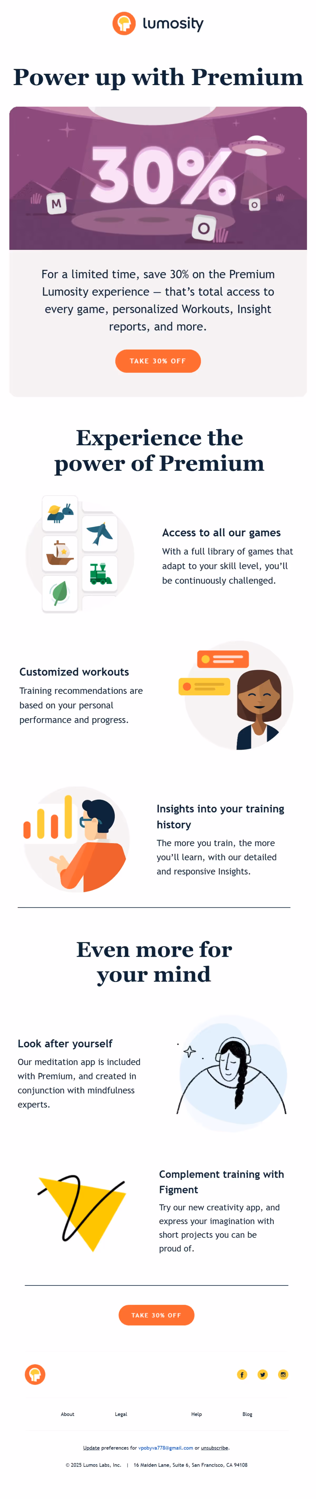 Lumosity: Brain Training Email Flow Screens