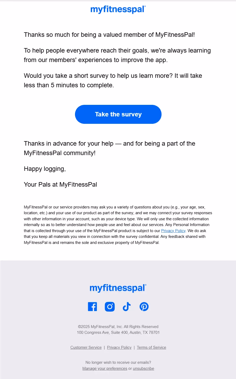 Our detailed screenshots reveal how MyFitnessPal creates email experiences that feel like community support rather than marketing communication.