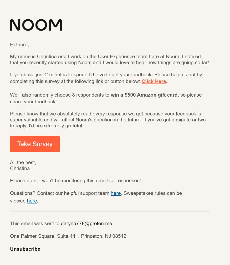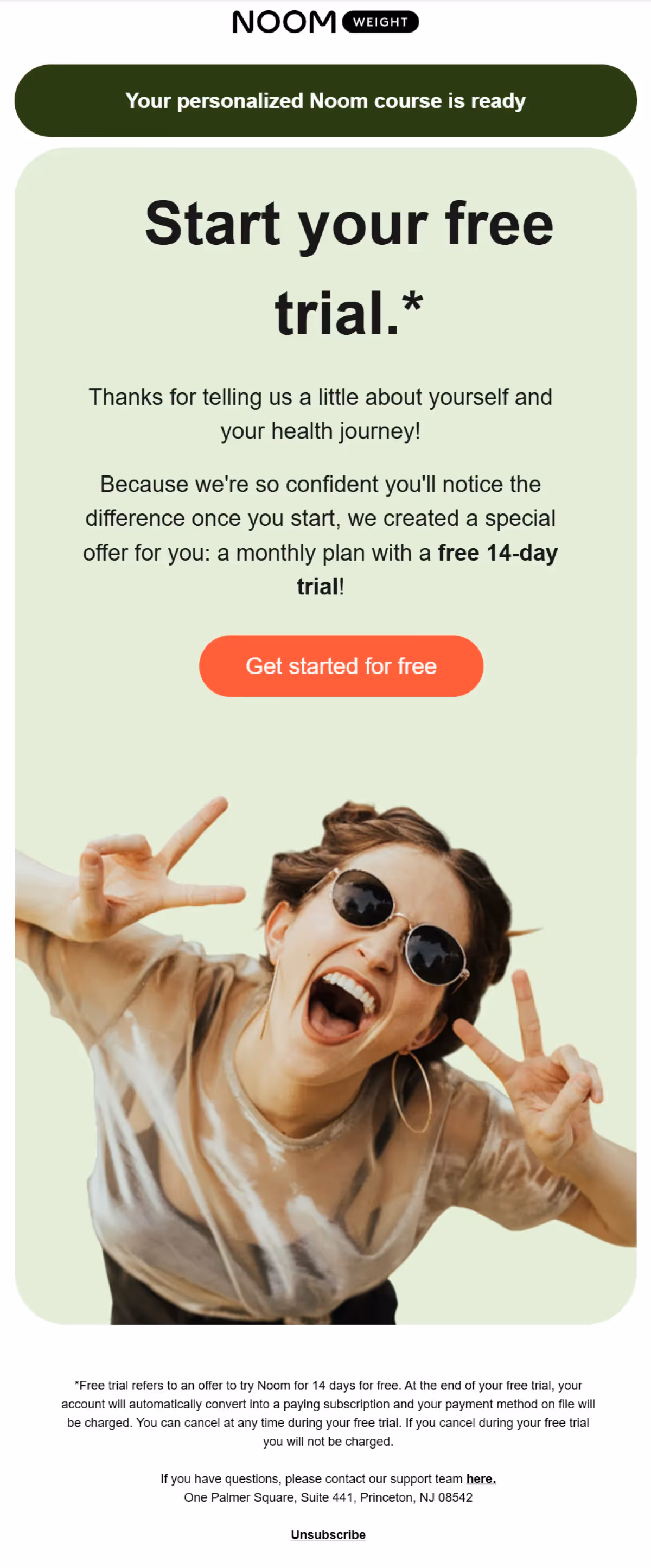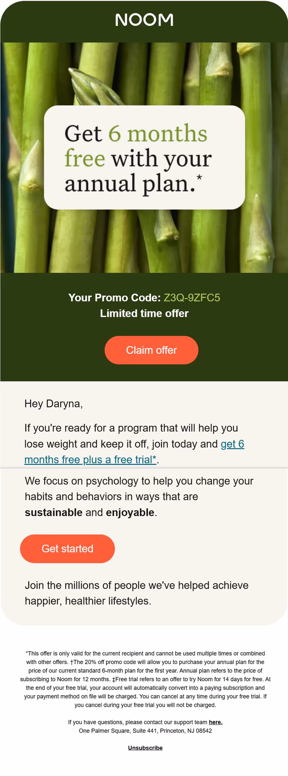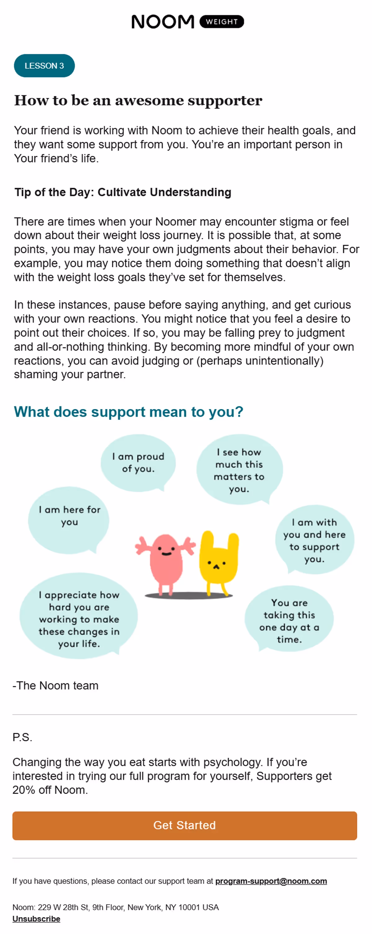 What makes Noom unique is their focus on educational content that builds psychological understanding. Emails explore the science of motivation and habit formation rather than promoting quick fixes.