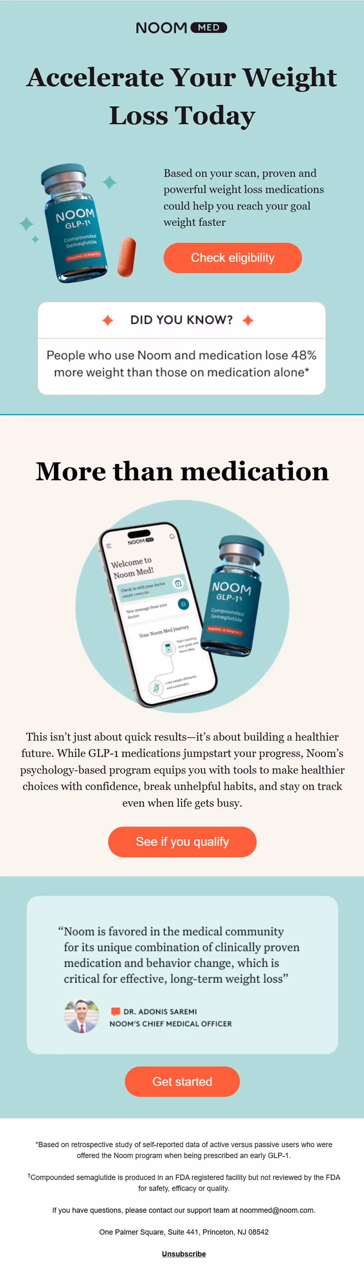 Our comprehensive gallery shows how Noom combines behavioral science with supportive communication, creating email experiences that educate while motivating lasting change.