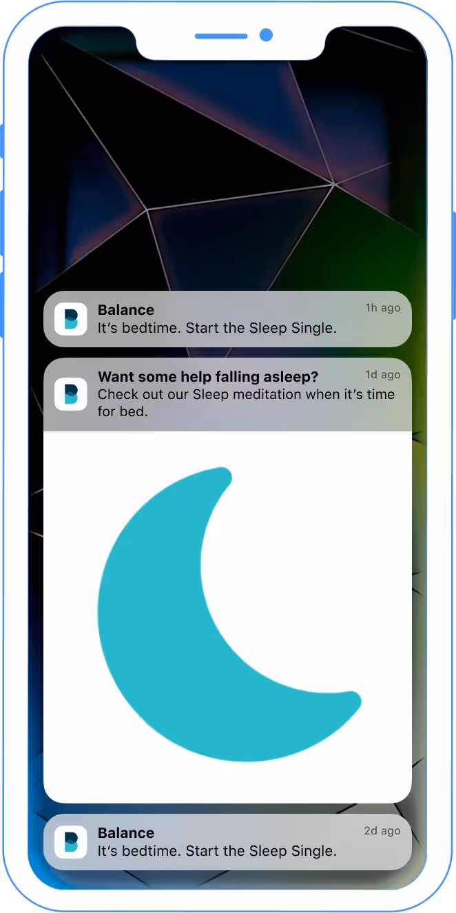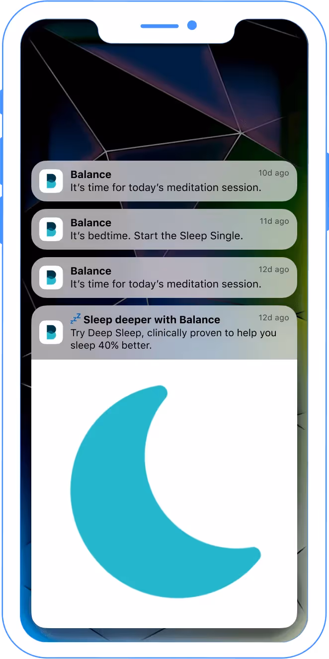 Balance: Meditation & Sleep Mobile Push Notification Flow Screens