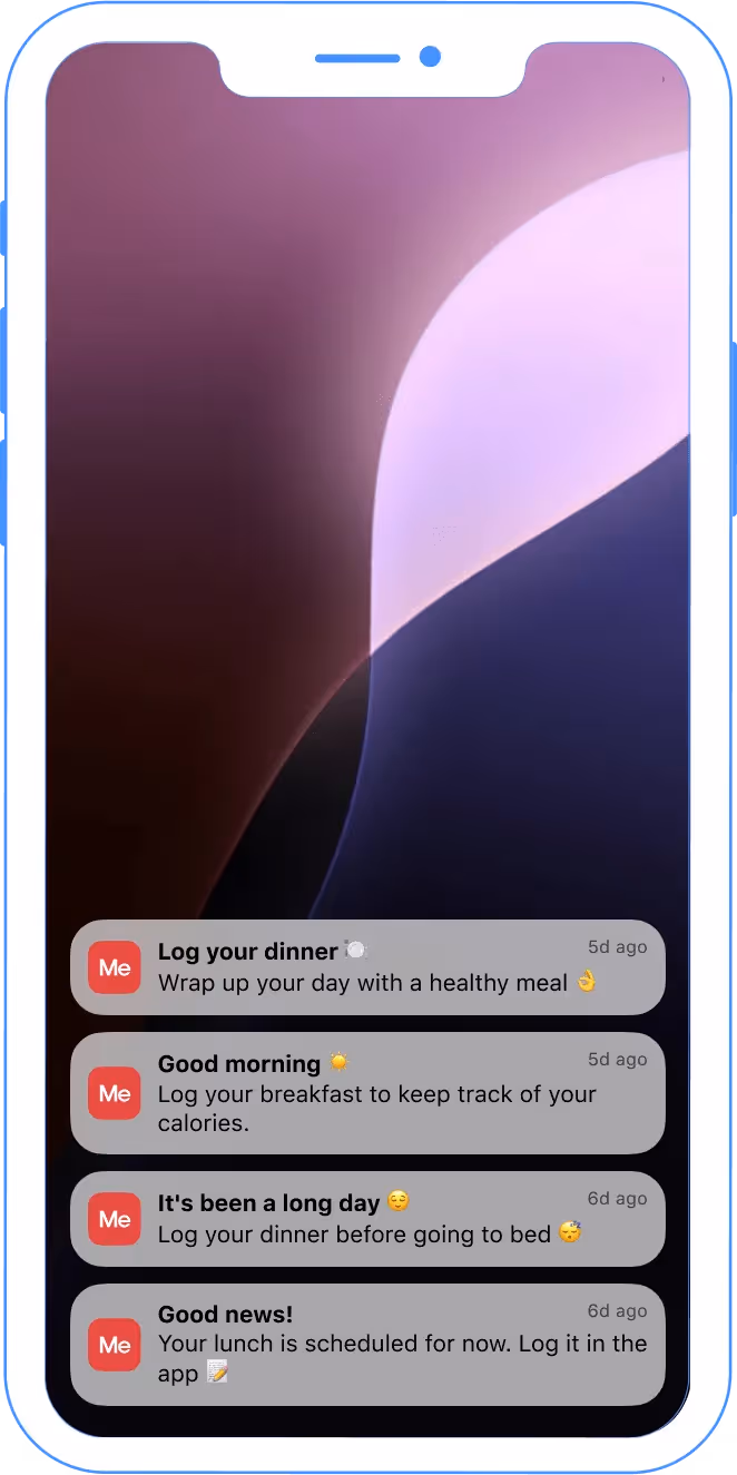 BetterMe: Health Coaching Mobile Push Notification Flow Screens