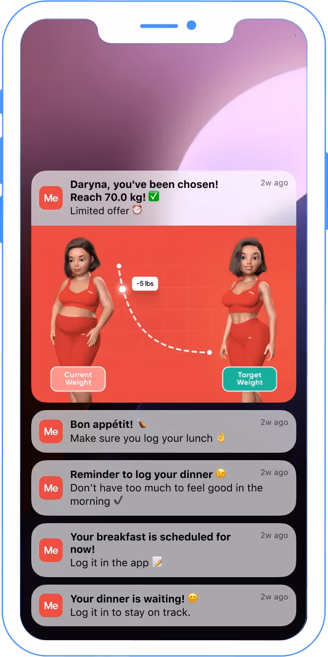 How does a comprehensive wellness app create holistic lifestyle transformation through integrated communication? BetterMe's push notification strategy showcases how fitness, nutrition, and mental wellness can be coordinated through professional coaching support messaging.