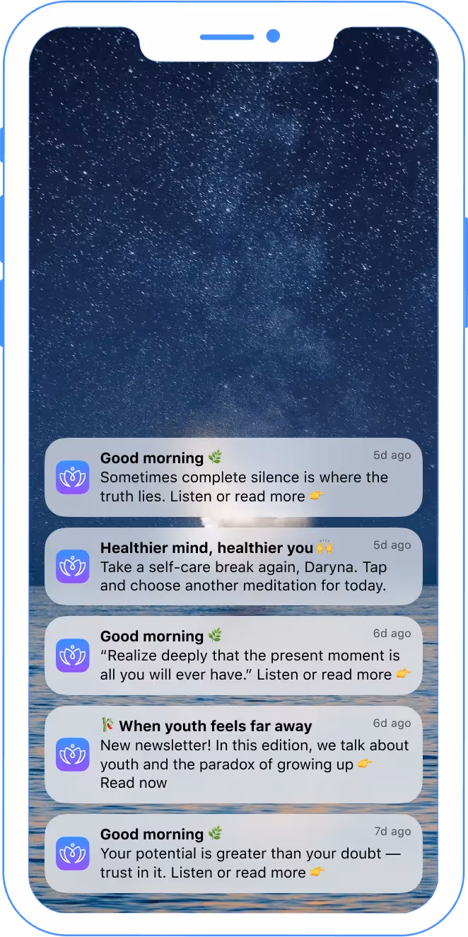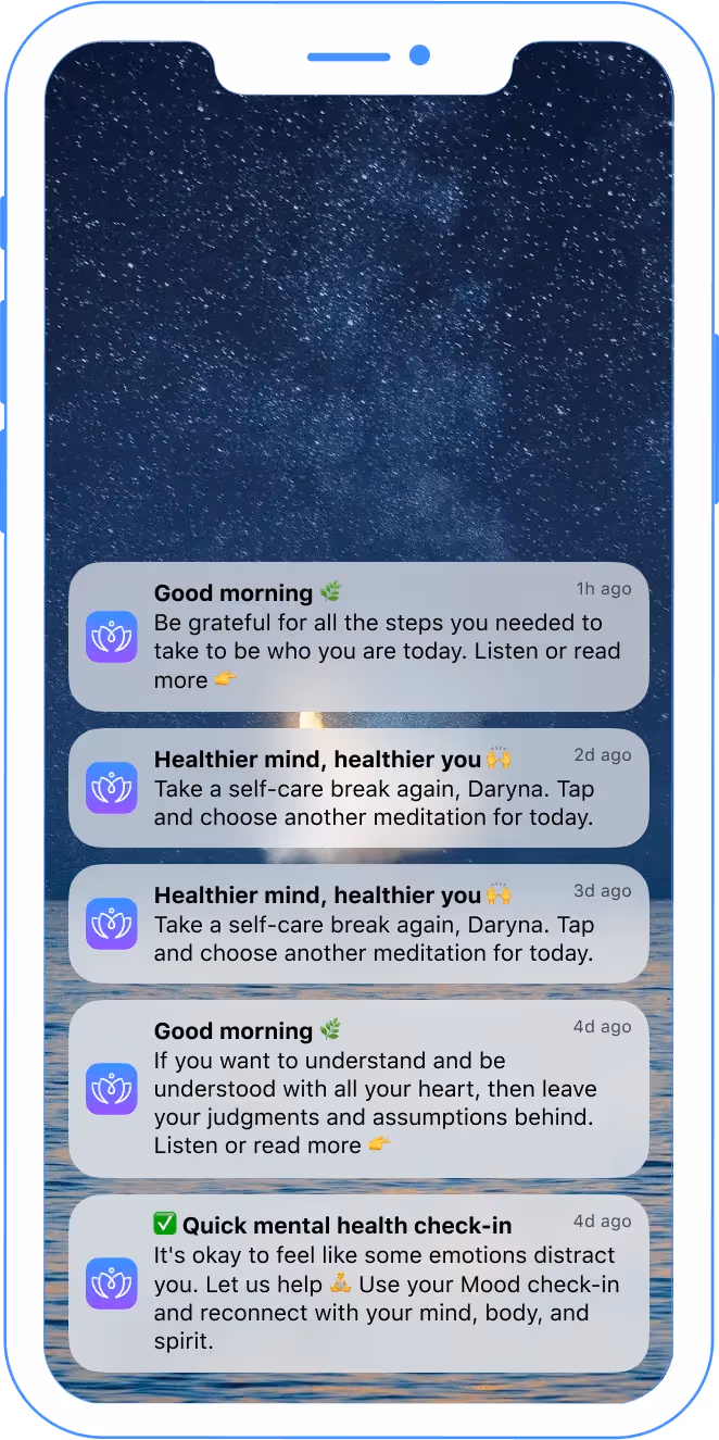 What makes their approach unique is cultural and emotional diversity in notification content. Messages reflect global perspectives and varied emotional experiences, creating inclusive wellness support.