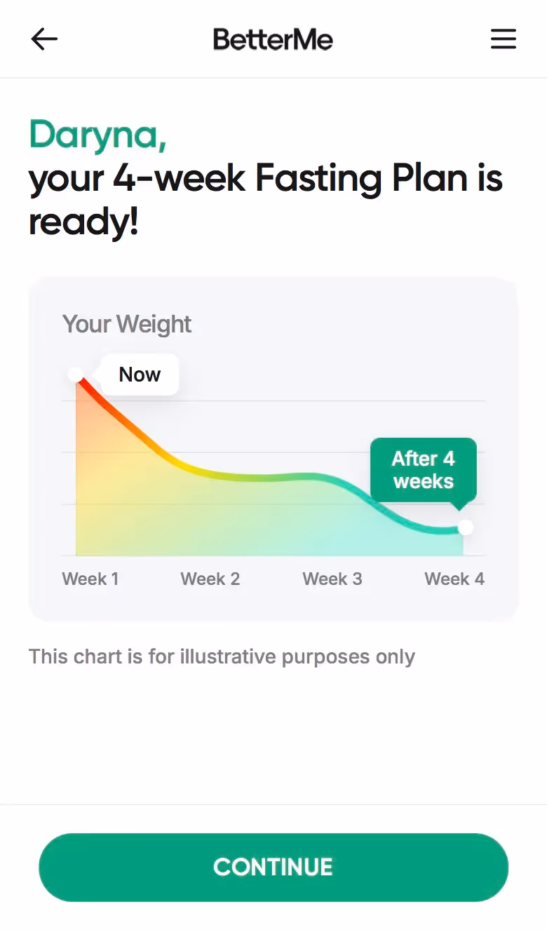 The experience includes realistic timeline setting. Users see projected results based on commitment levels, with BetterMe explaining sustainable versus aggressive approaches. This transparency manages expectations effectively.
