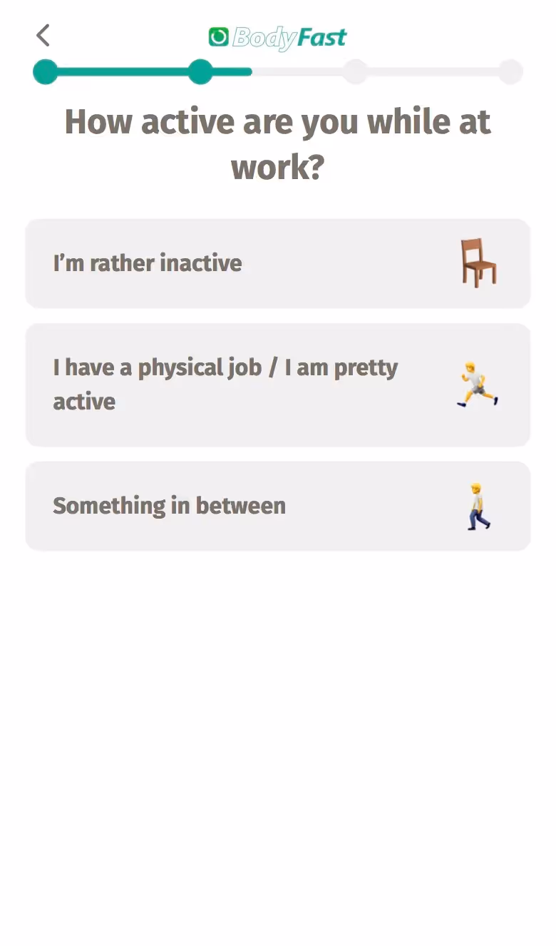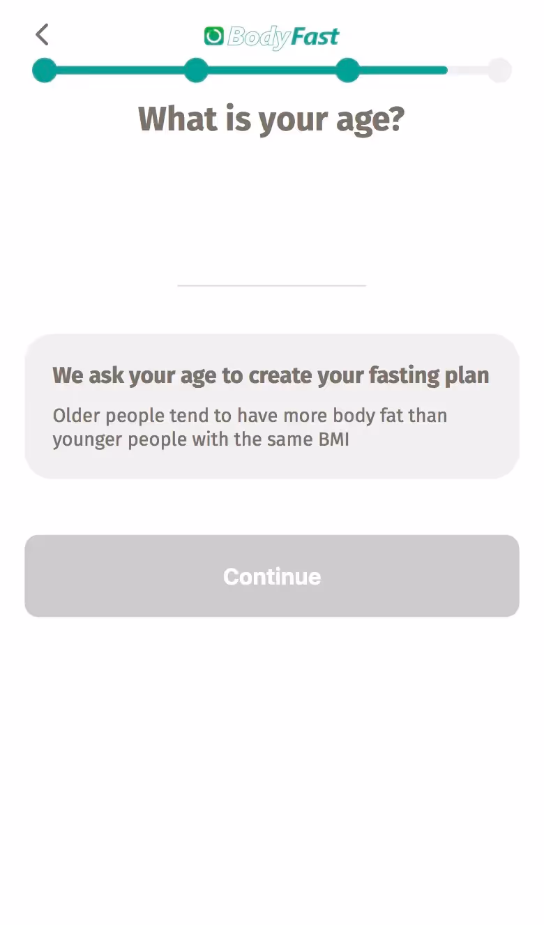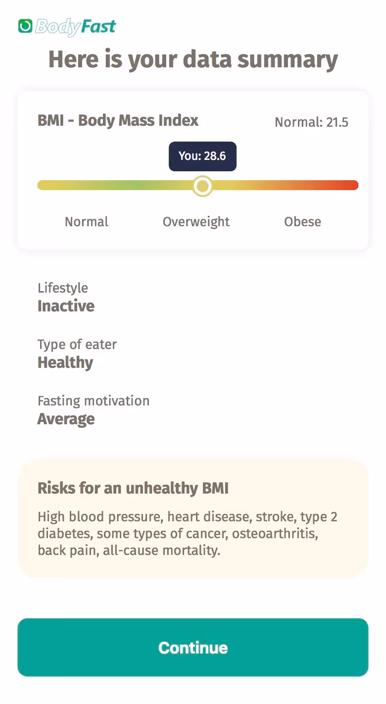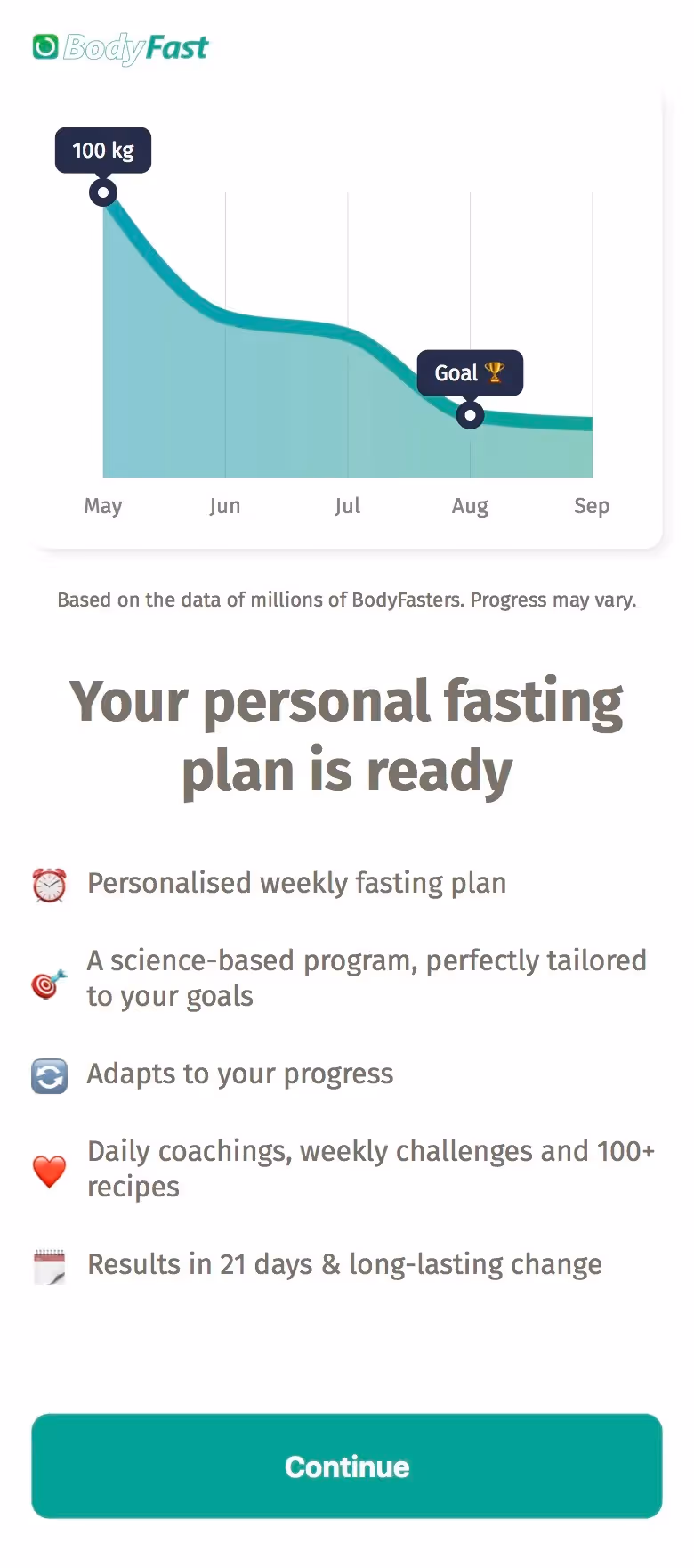 BodyFast: Intermittent Fasting Web Onboarding Flow Screens