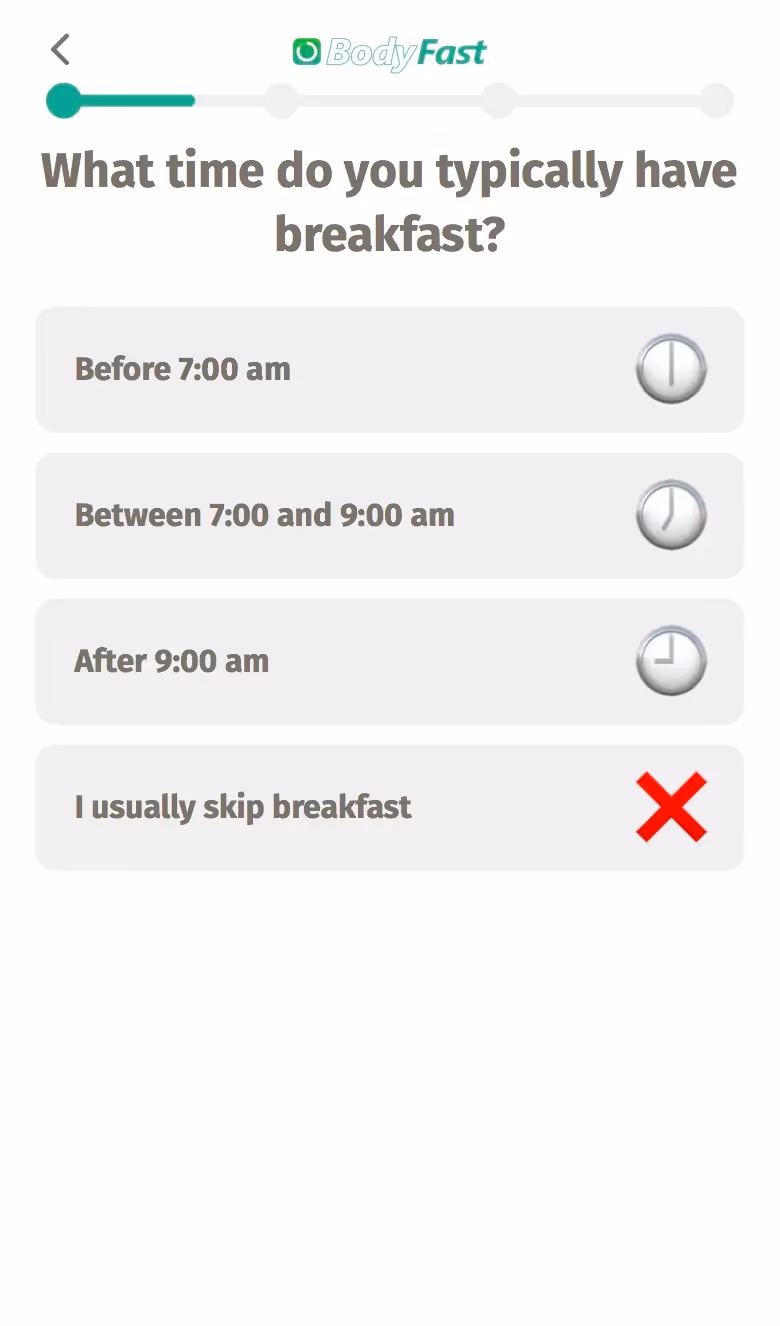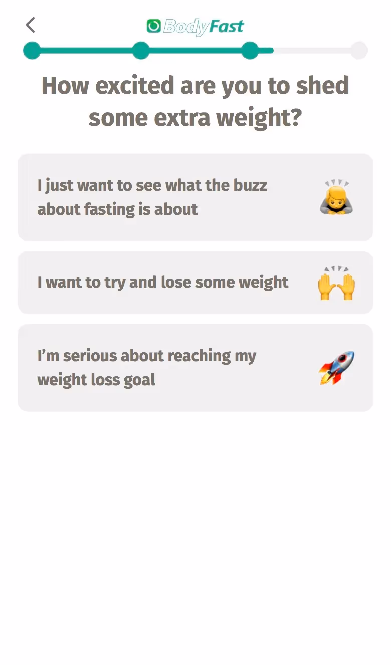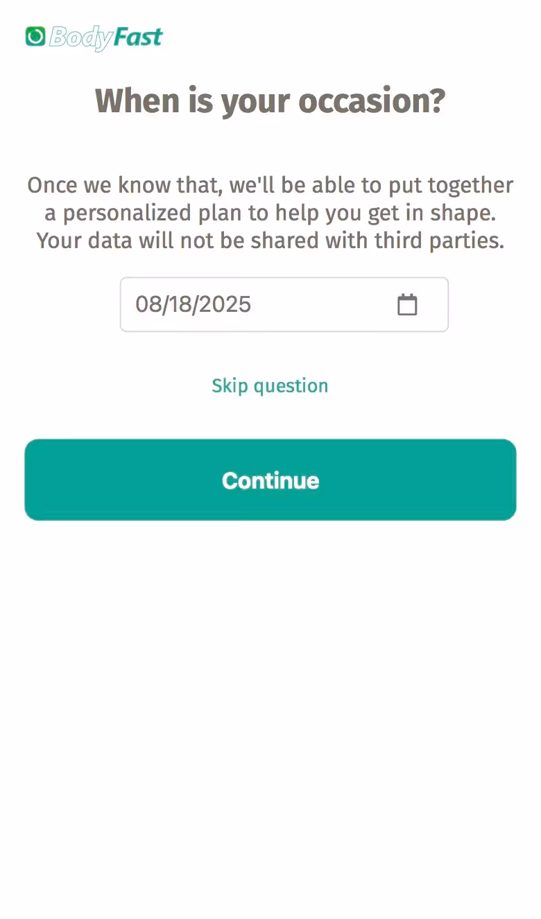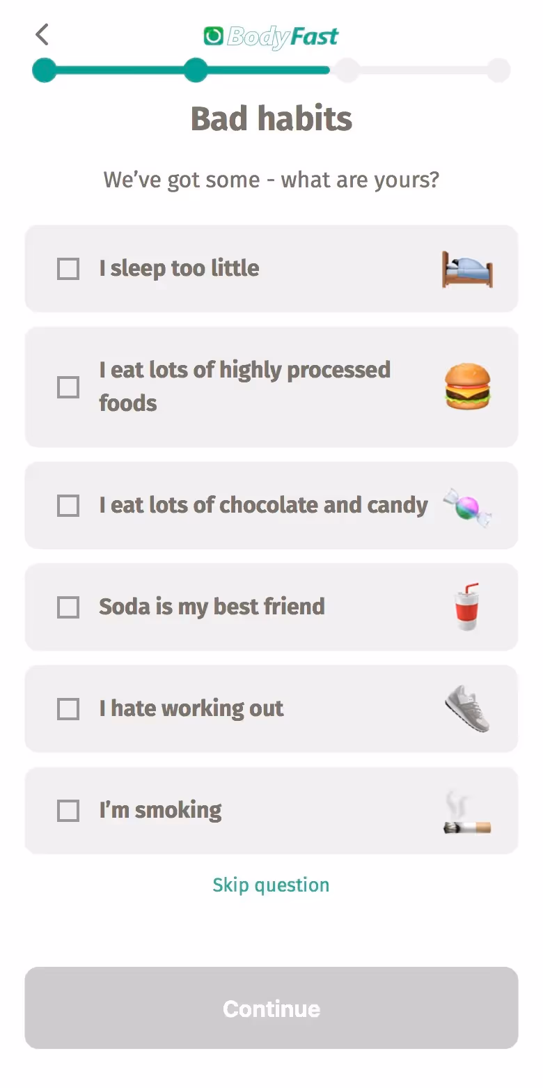 BodyFast: Intermittent Fasting Web Onboarding Flow Screens
