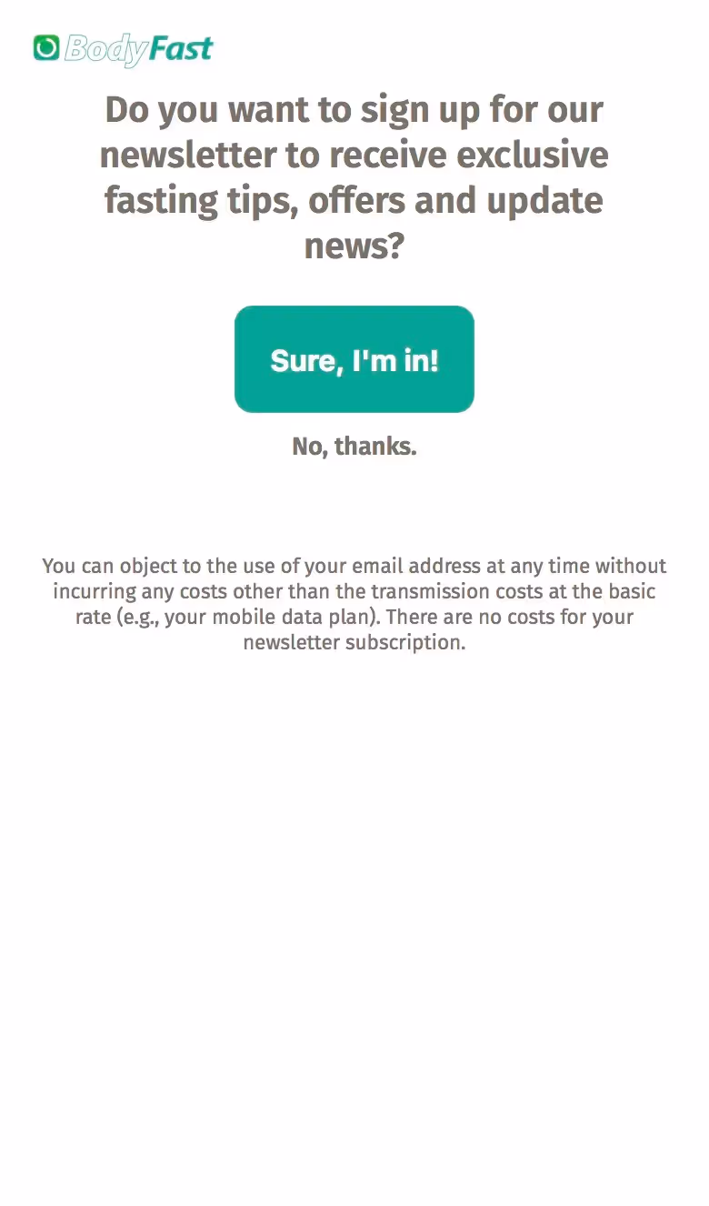 Browse our screenshot collection to see how BodyFast makes a potentially intimidating practice approachable. Their push notifications and email sequences maintain this supportive tone, acting as a fasting companion throughout the user journey.