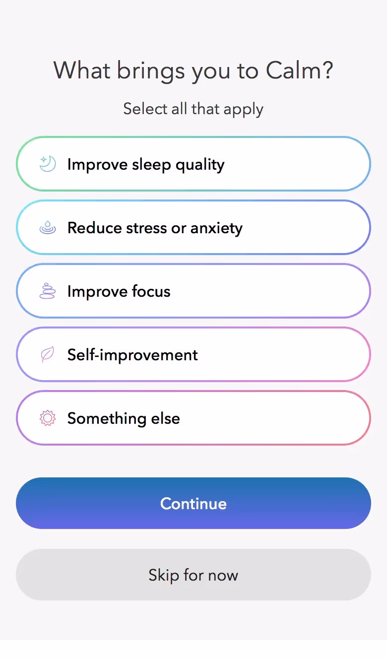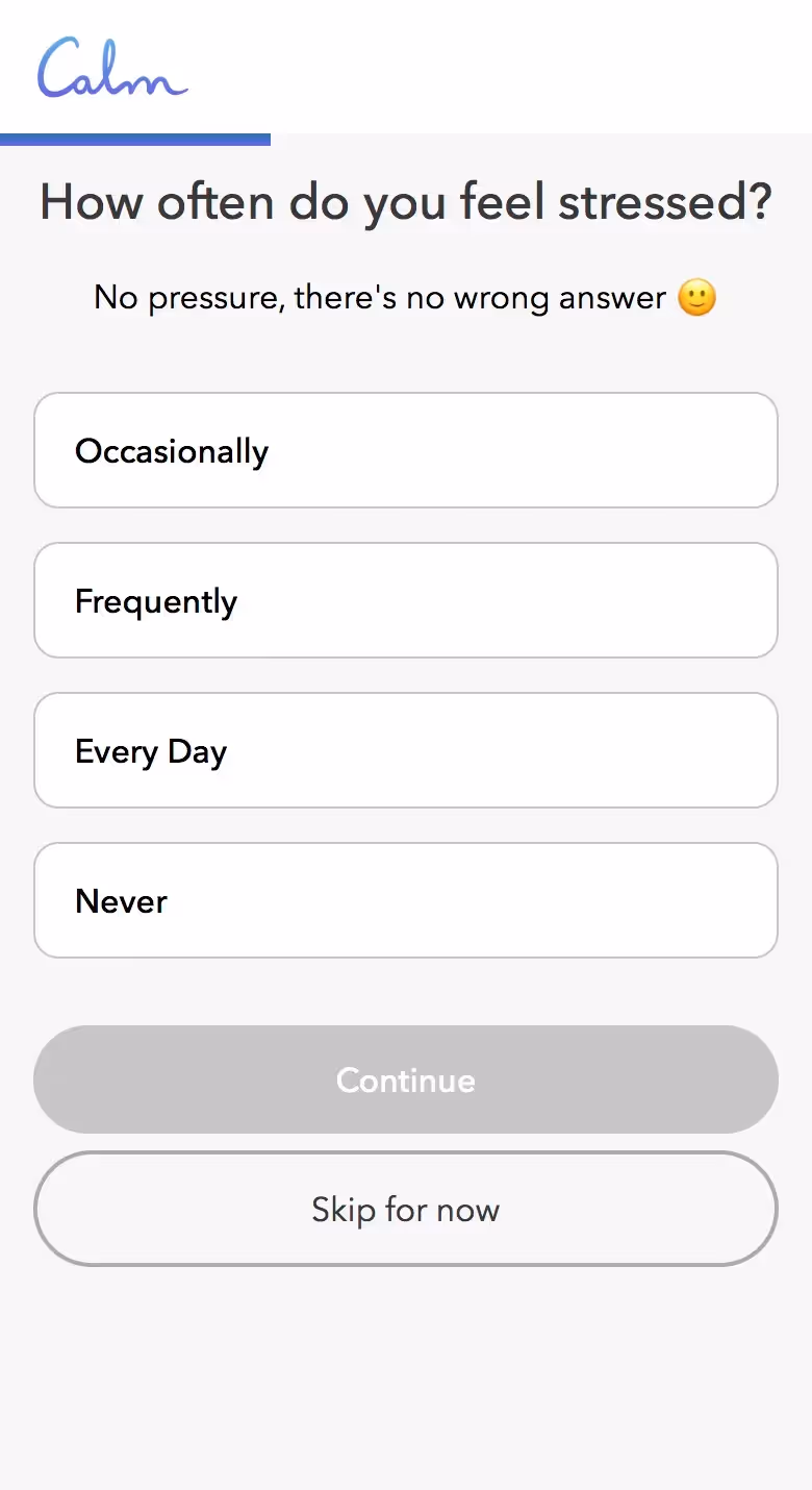 The flow respects user readiness. Calm offers meditation experience assessment without judgment, customizing content recommendations for complete beginners through advanced practitioners. This inclusive approach widens their appeal.