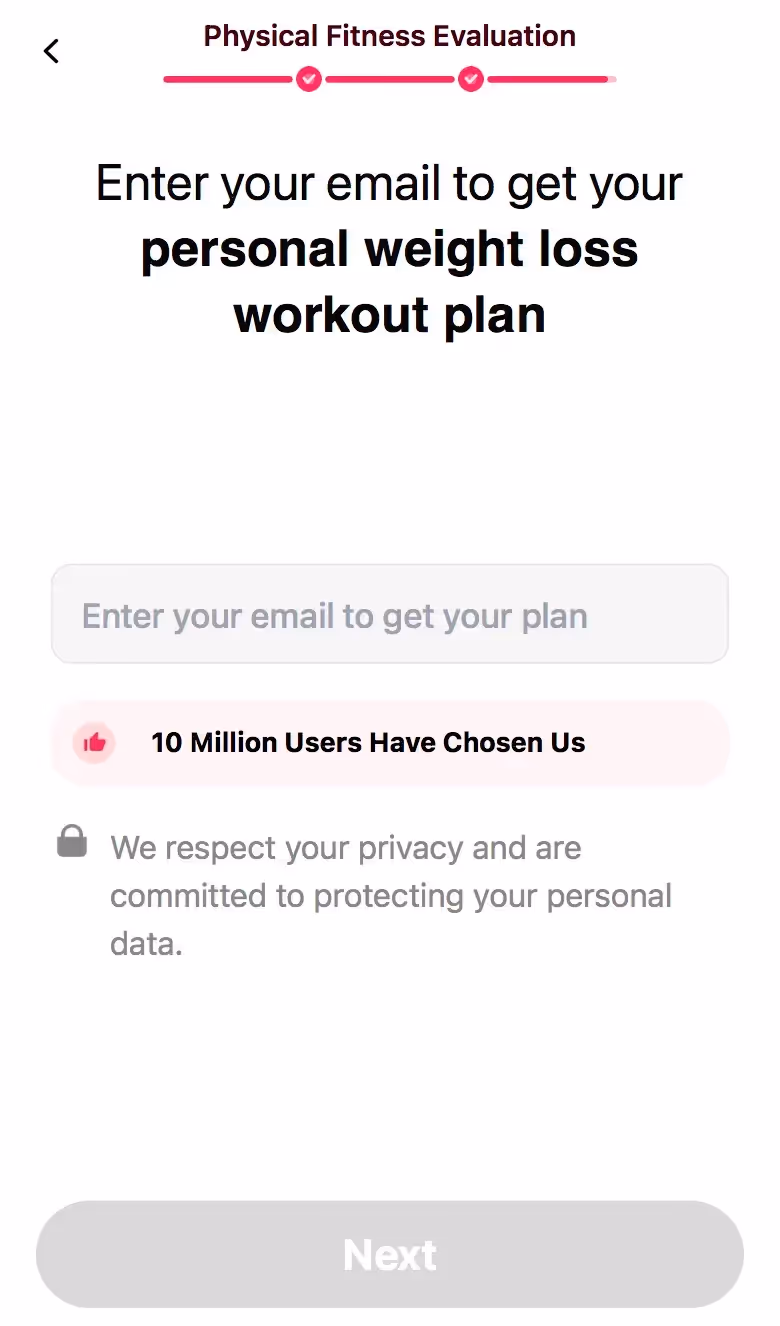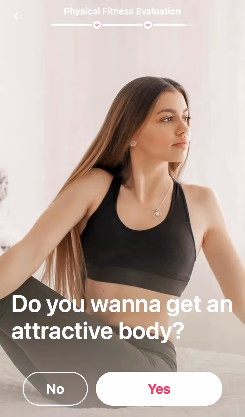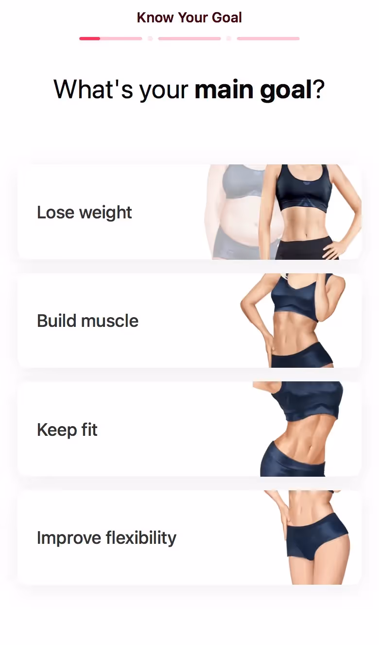 LazyFit's web onboarding embraces fitness minimalism. Their flow celebrates small commitments and equipment-free workouts, appealing to overwhelmed beginners or restart attempts.