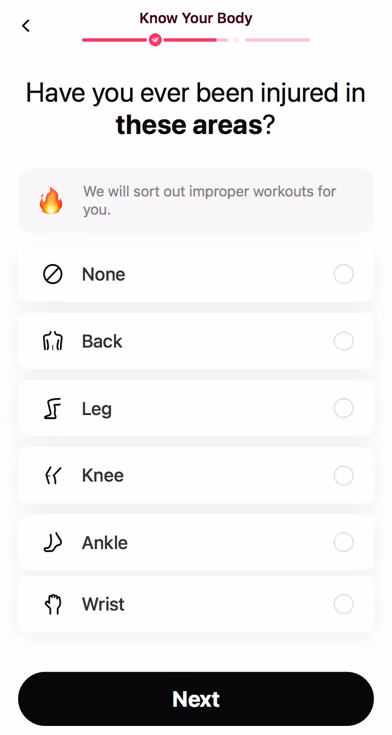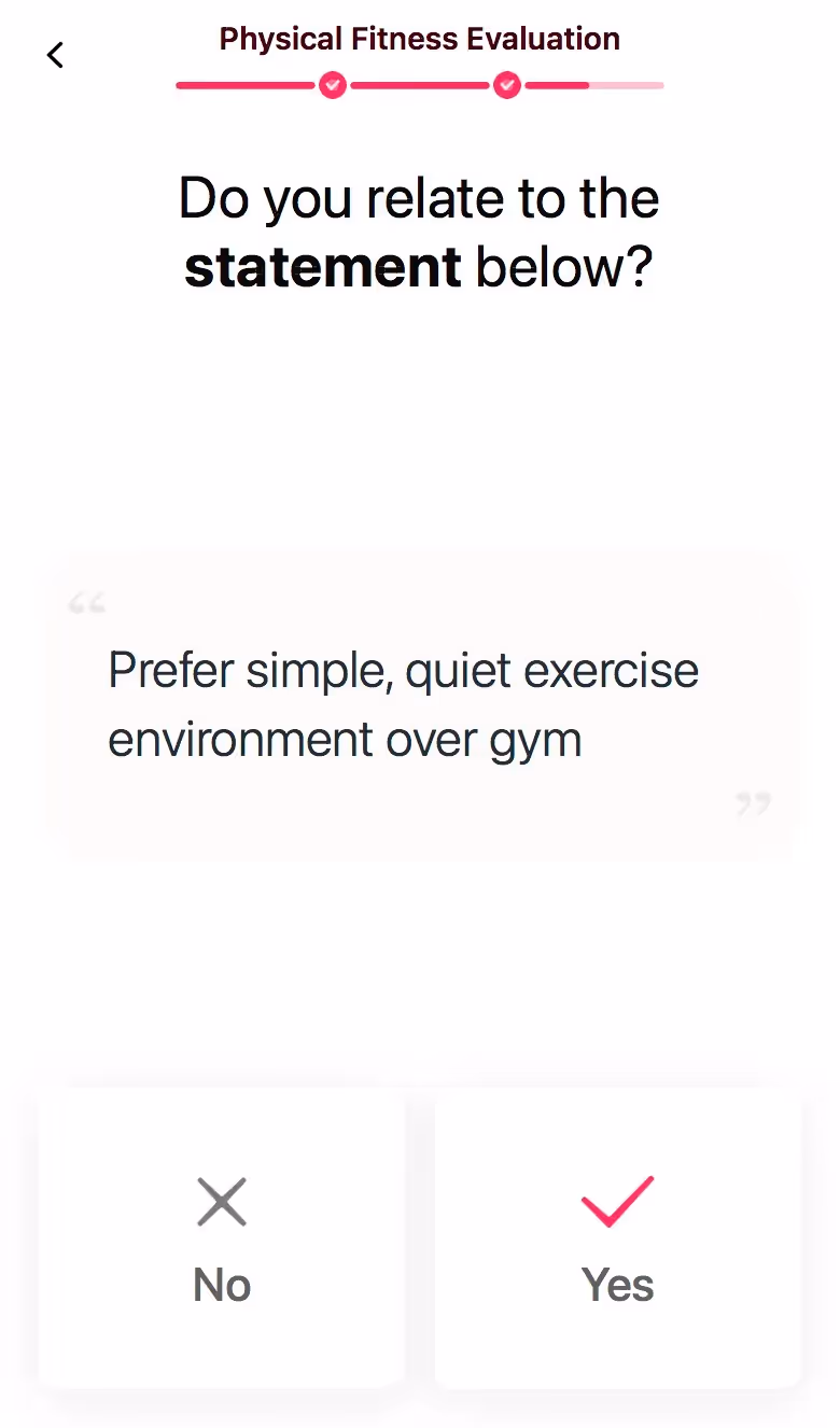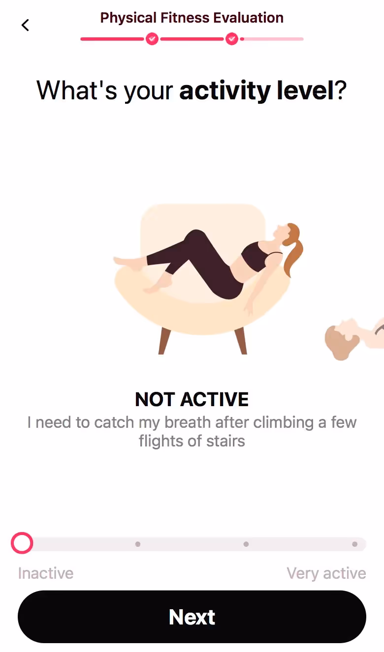 LazyFit's web onboarding embraces fitness minimalism. Their flow celebrates small commitments and equipment-free workouts, appealing to overwhelmed beginners or restart attempts.