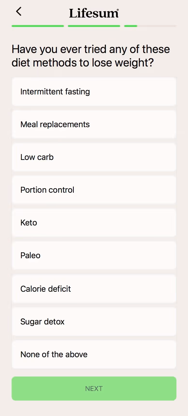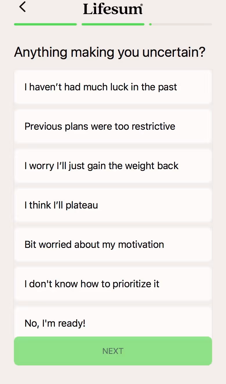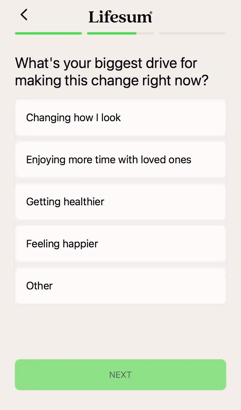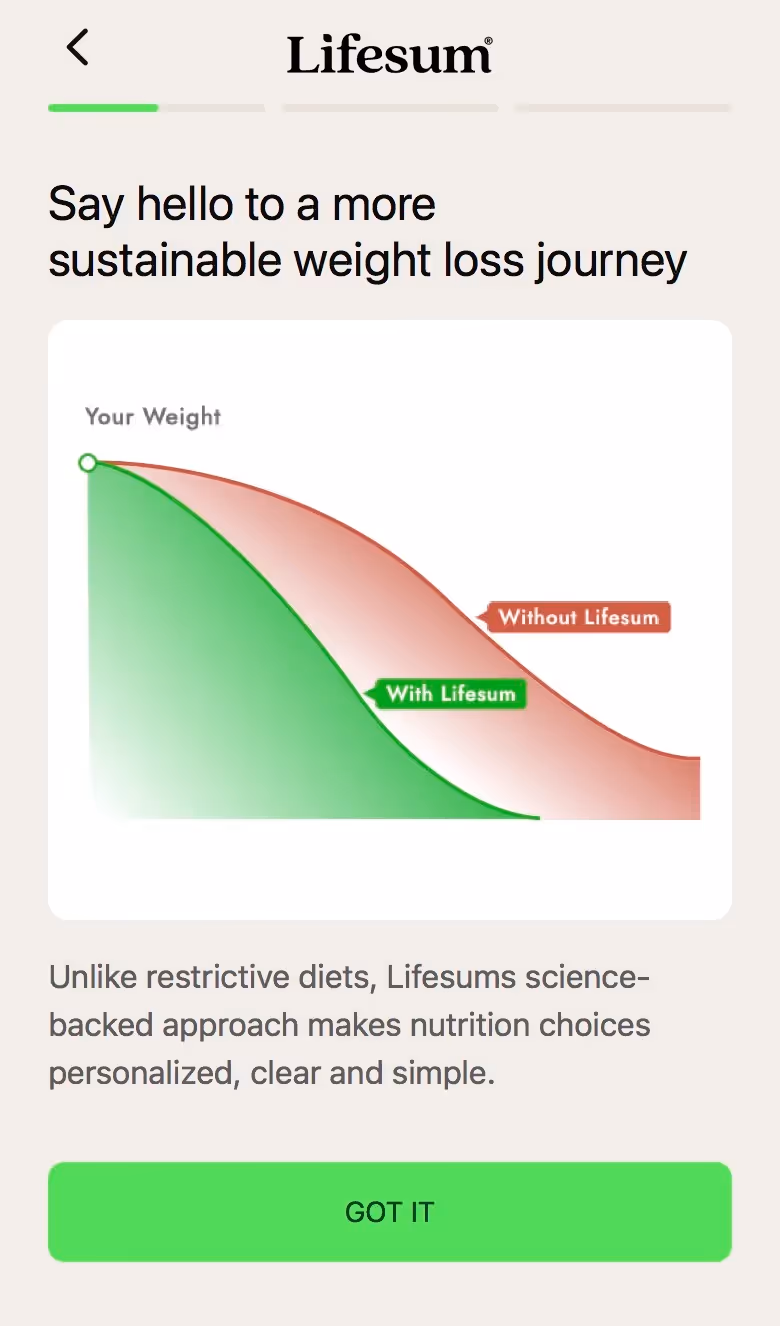Lifesum's web onboarding transcends basic calorie counting by positioning nutrition as lifestyle enhancement. Their flow begins with aspirational imagery and holistic health goals before transitioning to a practical setup.