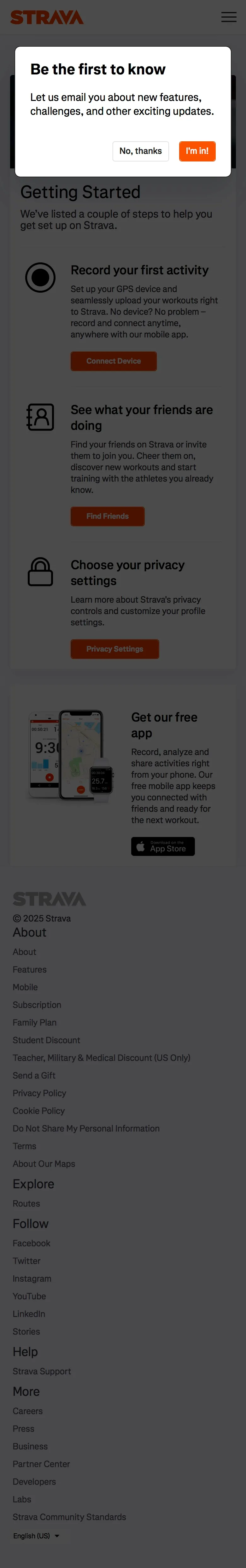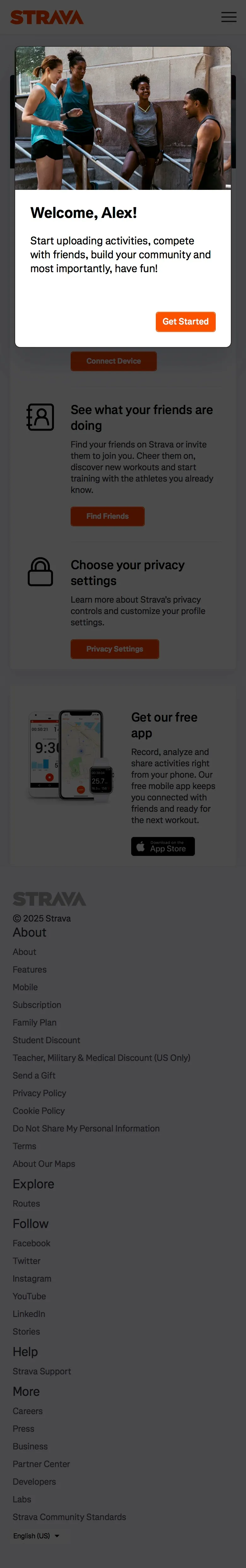 Strava Web Onboarding Flow Screens